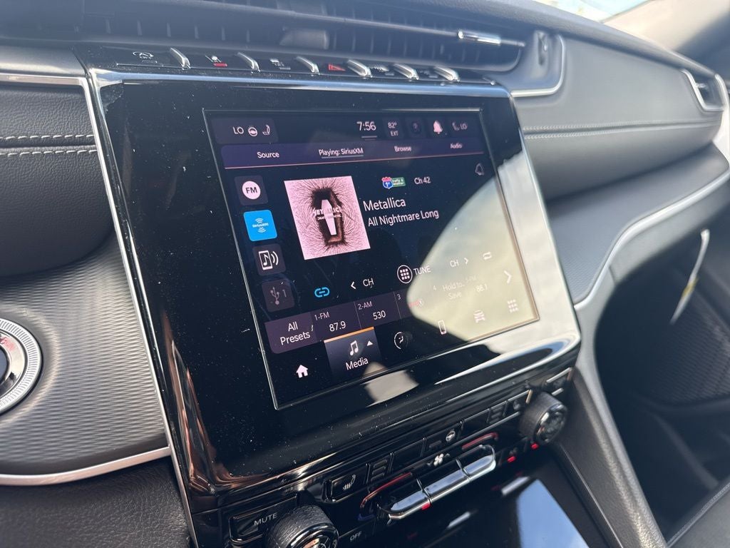 Altitude Appearance Package, Quick Order Package 23B Altitude (115V Auxiliary Power Outlet, 3rd Row Charge-Only USB Ports, Black Headliner, Capri Leatherette/Suede Seats, Delete Laredo Badge, Gloss Black Exterior Accents, Heated Front Seats, Heated Steering Wheel, Power Liftgate, Rain Sensitive Windshield Wipers, Remote Start System, Selectable Tire Fill Alert, Wheels: 18 x 8.0 Fully Painted Aluminum 1, and Wireless Charging Pad), Trailer Tow Package (180 Amp Alternator, 7 & 4 Pin Wiring Harness, Automatic Headlamp Leveling System, Class IV Receiver Hitch, Dual Exhaust Tips, Heavy-Duty Engine Cooling, Rear Load Leveling Suspension, and Trailer Hitch Zoom), 3.45 Rear Axle Ratio, 3rd row seats: split-bench, 4-Wheel Disc Brakes, 6 Speakers, ABS brakes, Air Conditioning, Alloy wheels, AM/FM radio: SiriusXM, Anti-whiplash front head restraints, Automatic temperature control, Brake assist, Bumpers: body-color, Cloth Seats, Compass, Delay-off headlights, Driver door bin, Driver vanity mirror, Dual front impact airbags, Dual front side impact airbags, Electronic Stability Control, Emergency communication system, Four wheel independent suspension, Front anti-roll bar, Front Bucket Seats, Front Center Armrest w/Storage, Front dual zone A/C, Front License Plate Bracket, Front reading lights, Fully automatic headlights, Heated door mirrors, Illuminated entry, Knee airbag, Low tire pressure warning, Manual Fold Seatbacks, Model Year Tracking, Normal Duty Suspension, Occupant sensing airbag, Outside temperature display, Overhead airbag, Overhead console, Panic alarm, ParkView Rear Back-Up Camera, Passenger door bin, Passenger vanity mirror, Power door mirrors, Power driver seat, Power steering, Power windows, Radio data system, Radio: Uconnect 5 w/8.4 Display, Rear air conditioning, Rear anti-roll bar, Rear reading lights, Rear window defroster, Rear window wiper, Reclining 3rd row seat, Remote keyless entry, Security system, Speed control, Speed-Sensitive Wipers, Split folding rear seat, Spoiler, Steering wheel mounted audio controls, Tachometer, Telescoping steering wheel, Tilt steering wheel, Traction control, Trip computer, Variably intermittent wipers, Voltmeter, Wheels: 18 x 8.0 Fully Painted Aluminum, and Wheels: 20 x 8.5 Gloss Black Painted Aluminum.