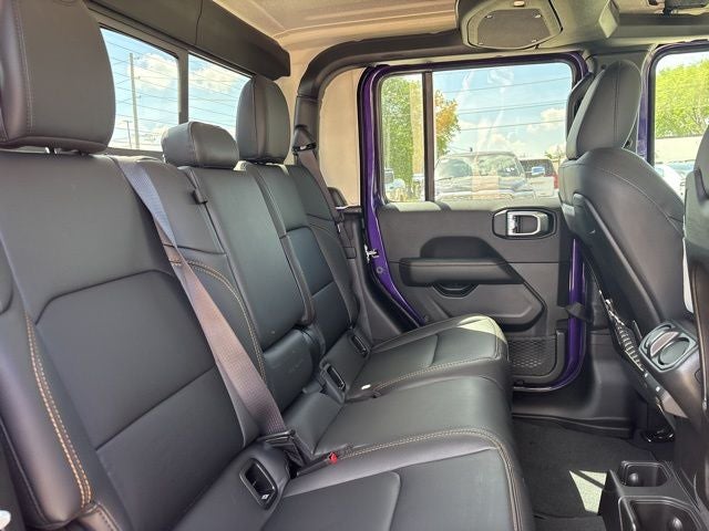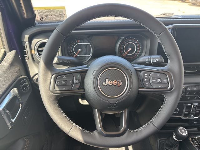 LED Headlamp and Fog Lamp Group (Daytime Running Lamps LED Accents, Front LED Fog Lamps, and LED Premium Reflector Headlamps), Quick Order Package 24H Sahara (110 Mph Vehicle Max Speed Calibration, 2-Piece Body Color Fender Flares, Advanced Brake Assist, Air Conditioning with Auto Temp Control, Automatic Headlamps, Body Color 3-Piece Hard Top, Central ADAS Decision Module (CADM), Cluster 7.0 TFT Color Display, Corning Gorilla Glass, Daytime Running Lamp System, Deep Tint Sunscreen Windows, Emergency/Assistance Call, Freedom Panel Storage Bag, Front Door Locks 2-Door Passive Entry, Full Length Floor Console Premium Armrest, Full Speed Forward Collision Warning Plus, Hard Seat Back, Heated Front Seats, Heated Steering Wheel, Leather Wrapped Park Brake Handle, Leather Wrapped Shift Knob, Normal Duty Plus Suspension, Power 4-Way Driver Lumbar Adjust, Power 4-Way Passenger Lumbar Adjust, Power Adjust 8-Way Driver Seat, Power Adjust 8-Way Front Passenger Seat, Power Heated Mirrors, Premium Door Trim Panel, Premium McKinley Trimmed Seats, Premium Wrapped Steering Wheel, Rear Armrest with Cupholder Seat, Rear Sliding Window, Rear Window Defroster, Remote Start System, Sahara, Sahara Badge Neutral Gray, Security Alarm, Sun Visors with Illuminated Vanity Mirrors, Universal Garage Door Opener, and Wheels: 18 x 7.5 Machined/Painted Gray), Trailer Tow and Auxiliary Switch Group (Auxiliary Switches, Class IV Receiver Hitch, Heavy-Duty Engine Cooling, and Trailer Hitch Zoom), 12.3 Touchscreen Display, 3.73 Rear Axle Ratio, 4-Wheel Disc Brakes, 4G LTE Wi-Fi Hot Spot, 8 Speakers, ABS brakes, Air Conditioning, Alexa Built-in, AM/FM radio: SiriusXM with 360L, Apple CarPlay, Apple CarPlay/Android Auto, Brake assist, Compass, Connectivity - US/Canada, Delay-off headlights, Driver door bin, Driver vanity mirror, Dual front impact airbags, Dual front side impact airbags, Electronic Stability Control, For Details, Visit DriveUconnect.com, Front anti-roll bar, Front Bucket Seats, Front Center Armrest w/Storage, Front fog lights, Front License Plate Bracket, Front reading lights, Google Android Auto, Illuminated entry, Integrated Center Stack Radio, Integrated roll-over protection, Low tire pressure warning, MyFlexCare Service Plan, Normal Duty Suspension, Occupant sensing airbag, Outside temperature display, Overhead airbag, Panic alarm, ParkView Rear Back-Up Camera, Passenger door bin, Passenger vanity mirror, Power steering, Power windows, Radio data system, Radio: Uconnect 5 with 12.3 Display, Rear anti-roll bar, Rear reading lights, Remote keyless entry, SiriusXM Radio Service, SiriusXM with 360L, Speed control, Split folding rear seat, Steering wheel mounted audio controls, Tachometer, Telescoping steering wheel, Tilt steering wheel, Traction control, Trip computer, USB Host Flip, Variably intermittent wipers, Voltmeter, and Wheels: 17 x 7.5 Black Steel StyleD.