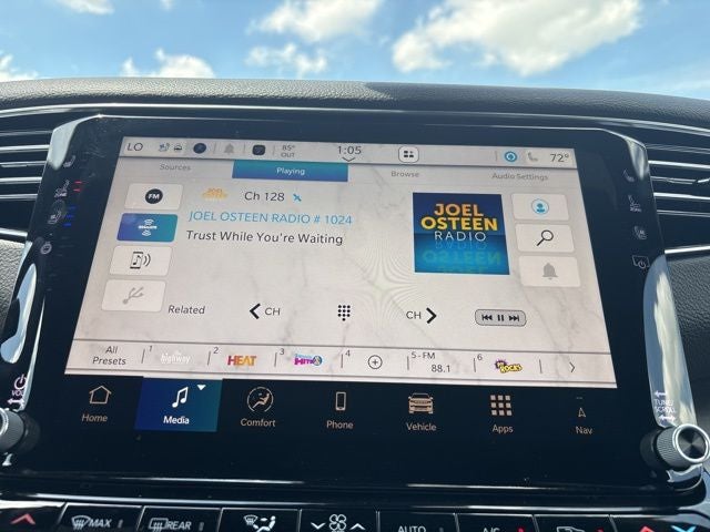 Premium Group I (3 Panel Sunroof, 3rd Row 60/40 Power Recline Seat, Auto Adjust in Reverse Exterior Mirrors, Auto Power Folding Exterior Mirrors, Auto Power Folding Mirrors, Auto-Dimming Exterior Driver Mirror, Exterior Mirrors Approach Lamps, Exterior Mirrors w/Memory, Exterior Mirrors w/Supplemental Signals, Heated Exterior Mirrors, Interior Rear Facing Camera, Luxury Front & Rear Floor Mats, P&P Park & Unpark Assist w/Stop System, Reversible Carpet/Vinyl Cargo Mat, Side Distance Warning, and Surround View Camera System), Quick Order Package 29E Grand Wagoneer, 118 MPH Maximum Speed Calibration, 3.55 Rear Axle Ratio, 3rd row seats: bench, 4-Wheel Disc Brakes, 9 Speakers, ABS brakes, Air Conditioning, Alloy wheels, AM/FM radio: SiriusXM with 360L, Anti-whiplash front head restraints, Apple CarPlay/Android Auto, Audio memory, Auto High-beam Headlights, Auto-dimming door mirrors, Auto-dimming Rear-View mirror, Auto-leveling suspension, Automatic temperature control, Brake assist, Bumpers: body-color, Compass, Delay-off headlights, Driver door bin, Driver vanity mirror, Driver's Seat Mounted Armrest, Dual front impact airbags, Dual front side impact airbags, Electronic Stability Control, Emergency communication system: Jeep Connect, Exterior Parking Camera Rear, Four wheel independent suspension, Front anti-roll bar, Front Bucket Seats, Front Center Armrest w/Storage, Front dual zone A/C, Front fog lights, Front reading lights, Fully automatic headlights, Garage door transmitter, Heated door mirrors, Heated front seats, Heated steering wheel, Illuminated entry, Knee airbag, Leather Trimmed Bucket Seats, Low tire pressure warning, Memory seat, MyFlexCare Service Plan, Navigation System, Normal Duty Suspension, Occupant sensing airbag, Outside temperature display, Overhead airbag, Overhead console, Panic alarm, Passenger door bin, Passenger seat mounted armrest, Passenger vanity mirror, Power door mirrors, Power driver seat, Power Liftgate, Power passenger seat, Power steering, Power windows, Radio data system, Radio: Uconnect 5 Nav w/12.0 Display, Rain sensing wipers, Rear air conditioning, Rear anti-roll bar, Rear reading lights, Rear seat center armrest, Rear window defroster, Rear window wiper, Reclining 3rd row seat, Remote keyless entry, Security system, Speed control, Speed-sensing steering, Speed-Sensitive Wipers, Split folding rear seat, Steering wheel memory, Steering wheel mounted audio controls, Tachometer, Telescoping steering wheel, Tilt steering wheel, Traction control, Trip computer, Turn signal indicator mirrors, Variably intermittent wipers, Ventilated front seats, Voltmeter, and Wheels: 20 x 9 Machine Face Painted Aluminum.