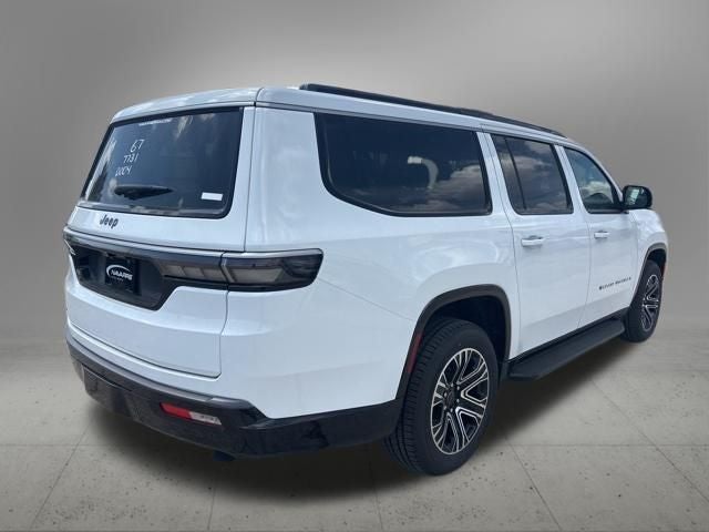 Premium Group I (3 Panel Sunroof, Auto Adjust in Reverse Exterior Mirrors, Auto Power-Folding Mirrors, Auto-Dimming Exterior Driver Mirror, Auto-Power-Folding Exterior Mirrors, Exterior Mirrors Approach Lamps, Exterior Mirrors with Memory, Exterior Mirrors with Supplemental Signals, Heated Exterior Mirrors, Interior Rear Facing Camera, Luxury Front and Rear Floor Mats, P and P Park and Unpark Assist with Stop System, Reversible Carpet/Vinyl Cargo Mat, Side Distance Warning, and Surround View Camera System), Quick Order Package 29E Grand Wagoneer, 118 MPH Maximum Speed Calibration, 3.55 Rear Axle Ratio, 3rd row seats: bench, 4-Wheel Disc Brakes, 9 Speakers, ABS brakes, Air Conditioning, Alloy wheels, AM/FM radio: SiriusXM with 360L, Anti-whiplash front head restraints, Apple CarPlay/Android Auto, Audio memory, Auto High-beam Headlights, Auto-dimming door mirrors, Auto-dimming Rear-View mirror, Auto-leveling suspension, Automatic temperature control, Black Exterior Accents, Brake assist, Bumpers: body-color, Compass, Delay-off headlights, Driver door bin, Driver vanity mirror, Driver's Seat Mounted Armrest, Dual front impact airbags, Dual front side impact airbags, Electronic Stability Control, Emergency communication system: Jeep Connect, Exterior Parking Camera Rear, Four wheel independent suspension, Front anti-roll bar, Front Bucket Seats, Front Center Armrest w/Storage, Front dual zone A/C, Front fog lights, Front reading lights, Fully automatic headlights, Garage door transmitter, Heated door mirrors, Heated front seats, Heated steering wheel, Illuminated entry, Knee airbag, Low tire pressure warning, Memory seat, MyFlexCare Service Plan, Navigation System, Normal Duty Suspension, Occupant sensing airbag, Outside temperature display, Overhead airbag, Overhead console, Panic alarm, Passenger door bin, Passenger seat mounted armrest, Passenger vanity mirror, Power door mirrors, Power driver seat, Power Liftgate, Power passenger seat, Power steering, Power windows, Radio data system, Radio: Uconnect 5 Nav with 12 Display, Rain sensing wipers, Rear air conditioning, Rear anti-roll bar, Rear reading lights, Rear seat center armrest, Rear window defroster, Rear window wiper, Reclining 3rd row seat, Remote keyless entry, Security system, Speed control, Speed-sensing steering, Speed-Sensitive Wipers, Split folding rear seat, Steering wheel memory, Steering wheel mounted audio controls, Tachometer, Telescoping steering wheel, Tilt steering wheel, Traction control, Trip computer, Turn signal indicator mirrors, Variably intermittent wipers, Ventilated front seats, and Voltmeter.