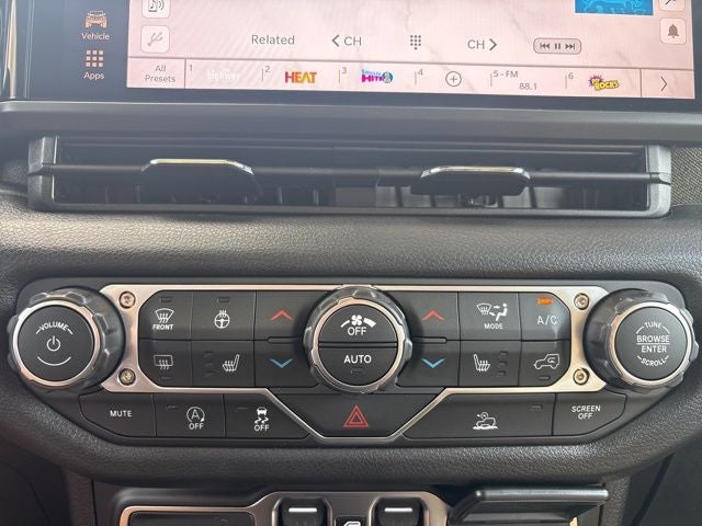 Convenience Group (2-Door Passive Entry, Front Door Locks, Air Conditioning with Auto Temp Control, Air Filtering, Cluster 7.0 TFT Color Display, Emergency/Assistance Call, Heated Front Seats, Heated Steering Wheel, and Universal Garage Door Opener), Quick Order Package 24H Willys 41 (4WD Willys '41 Swing Gate Decal, 7 and 4 Pin Wiring Harness, 97 MPH Vehicle Max Speed Calibration, Adaptive Cruise Control with Stop, Advanced Brake Assist, Automatic Headlamps, Auxiliary Switches, Body Color Grille with Gloss Black Rings, Body Color Rubicon Highline Flare, Class II Receiver Hitch, Cloth Low-Back Bucket Seats, Conventional Differential Front Axle, Corning Gorilla Glass, Dana M210 Wide HD Tube Front Axle, Dana M220 Wide Rear Axle, Daytime Running Lamps LED Accents, Deep Tint Sunscreen Windows, E-Locker Rear Axle, Front LED Fog Lamps, Full Speed Forward Collision Warning Plus, Increased Travel Export Tuned Suspension, LED Premium Reflector Headlamps, MOPAR All-Weather Floor Mats, Off-Road Plus Mode, Power Heated Mirrors, Premium Tan Sunrider Soft Top, Premium Wrapped Steering Wheel, Security Alarm, Steel Front Bumper, Steel Rear Bumper, Sun Visors with Illuminated Vanity Mirrors, Wheels: 17 x 7.5 Fully Painted, Willys '41 Retro Edition Buzz Model, Willys '41 Retro Edition Hood Decal, Willys '41 Retro Edition Tailgate Plaque, Willys '41 Retro Edition Wrangler Decal, Willys '41 Retro Shift Bezel Insert, and Willys '41 US Edition U.S. Hood Decal), Steel Power Dome Hood Package (Power Dome Dual Vented Hood), 12.3 Touchscreen Display, 4-Wheel Disc Brakes, 4G LTE Wi-Fi Hot Spot, 8 Speakers, ABS brakes, Air Conditioning, AM/FM radio: SiriusXM with 360L, Apple CarPlay, Apple CarPlay/Android Auto, Aux Battery, Body Color 3-Piece Hard Top, Brake assist, Compass, Connectivity - US/Canada, Delay-off headlights, Driver door bin, Driver vanity mirror, Dual front impact airbags, Dual front side impact airbags, Electronic Stability Control, For More Info, Call 800-643-2112, Freedom Panel Storage Bag, Front anti-roll bar, Front Bucket Seats, Front Center Armrest w/Storage, Front fog lights, Front reading lights, Google Android Auto, Illuminated entry, Integrated Center Stack Radio, Integrated roll-over protection, Low tire pressure warning, Myflexcare Service Plan, No Soft Top, Non-Lock Fuel Cap Without Discriminator, Normal Duty Suspension, Occupant sensing airbag, Outside temperature display, Overhead airbag, Panic alarm, ParkView Rear Back-Up Camera, Passenger door bin, Passenger vanity mirror, Power steering, Power windows, Radio data system, Radio: Uconnect 5 with 12.3 Display, Rear anti-roll bar, Rear reading lights, Rear Window Defroster, Rear Window Wiper/Washer, Remote keyless entry, SiriusXM Radio Service, SiriusXM with 360L, Speed control, Split folding rear seat, Steering wheel mounted audio controls, Stop-Start Dual Battery System, Tachometer, Telescoping steering wheel, Tilt steering wheel, Traction control, Trip computer, Variably intermittent wipers, and Wheels: 17 x 7.5 Black Steel Styled.