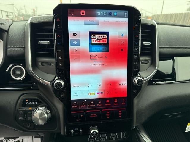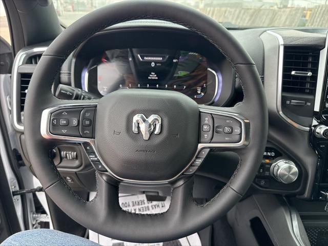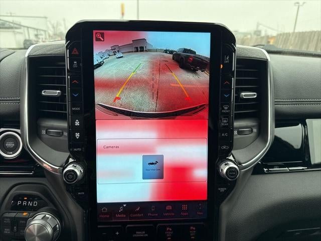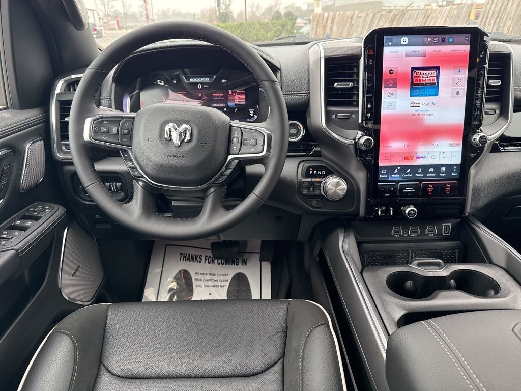 Laramie Level 2 Equipment Group (14.4 Touchscreen Display, 4G LTE Wi-Fi Hot Spot, Cluster 12 TFT Color Display, Connected Travel and Traffic Services, Connectivity - US/Canada, Front Passenger Interactive Display, GPS Navigation, Harman/Kardon 19 Speaker Premium Sound, Integrated Center Stack Radio, Integrated Voice Command with Bluetooth®, Power Tailgate, Radio: Uconnect 5 Nav with 14.4 Display, Rain Sensitive Windshield Wipers, SiriusXM Radio Service, SiriusXM with 360L, and USB Host Flip), Laramie Southwest Edition (Accent Color Premium Power Mirrors, Auto Power-Folding Mirrors, Auto-Dimming Exterior Driver Mirror, Black Painted Exterior Mirrors Caps, Body Color Front Bumper, Body Color Rear Bumper with Step Pads, Convex Wide-Angle Exterior Mirror Insert, Dome Dual LED Reading Lamp, Dual-Pane Panoramic Sunroof, Exterior Mirrors Courtesy Lamps, Exterior Mirrors with Heating Element, Exterior Mirrors with Memory, Exterior Mirrors with Supplemental Signals, Grille Surround 3 Body Color Tex 4 Chrome, LED Dome/Reading Lamp, MOPAR Lockable Console Storage, Power Deployable Running Boards, RAM Grille Badge - Chrome, Tow Hooks, and Trailer Brake Control), Quick Order Package 21H Laramie, Trailer Tow Group (Trailer Reverse Steering Control and Trailer Tire Pressure Monitoring System), 10 Speakers, 3.55 Rear Axle Ratio, 4-Wheel Disc Brakes, ABS brakes, Active Noise Control System, Adjustable pedals, Air Conditioning, Alloy wheels, AM/FM radio: SiriusXM with 360L, Anti-Spin Differential Rear Axle, Apple CarPlay/Android Auto, Audio memory, Auto High-beam Headlights, Auto-dimming door mirrors, Auto-Dimming Exterior Passenger Mirror, Auto-dimming Rear-View mirror, Automatic temperature control, Black Exterior Mirrors, Black Power-Fold Trailer Tow Mirrors, Brake assist, Bumpers: chrome, Chrome Exterior Mirrors, Compass, Delay-off headlights, Driver door bin, Driver vanity mirror, Dual front impact airbags, Dual front side impact airbags, Electronic Stability Control, Forward and Reverse Utility Lights, Front anti-roll bar, Front Bucket Seats, Front Center Armrest w/Storage, Front dual zone A/C, Front fog lights, Front License Plate Bracket, Front reading lights, Front wheel independent suspension, Fully automatic headlights, Garage door transmitter, Heated door mirrors, Heated front seats, Heated rear seats, Heated steering wheel, Illuminated entry, Leather steering wheel, Leather Trimmed Bucket Seats, Low tire pressure warning, Memory seat, Mirror Clearance/Running Lights, MOPAR Front and Rear Rubber Floor Mats, MyFlexCare Service Plan, Navigation System, Occupant sensing airbag, Off-Road Information Pages, Outside temperature display, Overhead airbag, Overhead console, Panic alarm, ParkView Rear Back-Up Camera, Passenger door bin, Passenger vanity mirror, Pedal memory, Power door mirrors, Power driver seat, Power passenger seat, Power steering, Power Telescoping Mirrors, Power windows, Power-Adjustable Convex Aux Mirrors, Radio data system, Radio: Uconnect 5 Navigation with 12.0 Display, Rear anti-roll bar, Rear reading lights, Rear seat center armrest, Rear step bumper, Remote keyless entry, Security system, Speed control, Split folding rear seat, Steering wheel mounted audio controls, Tachometer, Telescoping steering wheel, Tilt steering wheel, Traction control, Trailer Tow Mirrors, Trip computer, Turn signal indicator mirrors, Variably intermittent wipers, Ventilated front seats, Voltmeter, and Wheels: 20 x 9 Premium Paint/Polish.