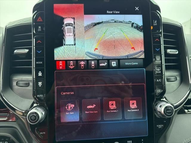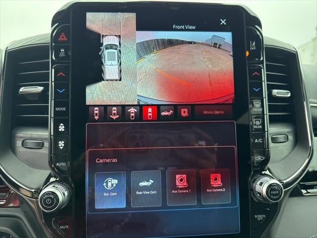 Limited Level An Equipment Group (12-Way/1-Way Trailer Connector, 14.4 Touchscreen Display, 240 Amp Alternator, 4G LTE Wi-Fi Hot Spot, Apple CarPlay, Connected Travel and Traffic Services, Connectivity - US/Canada, Disassociated Touchscreen Display, Drowsy Driver Detection, Evasive Steer Assist, Exterior 115V AC Outlet, Global Telematics Box Module, Google Android Auto, GPS Antenna Input, GPS Navigation, Hands-Free Active Driving Assist System, HD Radio, Heads-Up Display, Integrated Center Stack Radio, Integrated Voice Command with Bluetooth®, Intersection Collision Assist System, LED CHMSL Lamp, Radio: Uconnect 5 Nav with 14.4 Display, RamBox Cargo Management System, SiriusXM Radio Service, SiriusXM with 360L, Smartphone as a Key Capable, Surround View Camera System, Traffic Sign Recognition, Tri-Fold Tonneau Cover, and USB Host Flip), Night Edition (Accent Color Door Handles, Accent Color Premium Power Mirrors, Accent Color Tailgate Handle, Auto Power-Folding Mirrors, Auto-Dimming Exterior Driver Mirror, Black Day Light Opening Moldings, Black Exterior Truck Badging, Black Grille Surround Texture 7 Black, Black Headlamp Bezels, Black Painted Exterior Mirrors Caps, Black Tail Lamp Bezels, Body Color Front Bumper, Body Color Rear Bumper with Step Pads, Convex Wide-Angle Exterior Mirror Insert, Dual Exhaust with Black Tips, Exterior Mirrors Courtesy Lamps, Exterior Mirrors with Heating Element, Exterior Mirrors with Memory, Exterior Mirrors with Supplemental Signals, Pirelli Brand Tires, RAM Grille Badge - Black, Sport Performance Hood, and Wheels: 22 x 9 Premium Black Aluminum), Quick Order Package 22M Limited, 19 Speakers, 3.92 Rear Axle Ratio, 4-Wheel Disc Brakes, ABS brakes, Active Noise Control System, Adjustable pedals, Air Conditioning, Alloy wheels, AM/FM radio, Apple CarPlay/Android Auto, Audio memory, Auto High-beam Headlights, Auto-dimming door mirrors, Auto-dimming Rear-View mirror, Auto-leveling suspension, Automatic temperature control, Bodyside moldings, Brake assist, Bumpers: chrome, Chrome Exterior Mirrors, Compass, Delay-off headlights, Dome Dual LED Reading Lamp, Driver door bin, Driver vanity mirror, Dual front impact airbags, Dual front side impact airbags, Dual-Pane Panoramic Sunroof, Electronic Stability Control, Exterior Parking Camera Rear, Front anti-roll bar, Front Bucket Seats, Front Center Armrest w/Storage, Front dual zone A/C, Front fog lights, Front License Plate Bracket, Front reading lights, Front wheel independent suspension, Fully automatic headlights, Garage door transmitter, Genuine wood console insert, Genuine wood dashboard insert, Genuine wood door panel insert, Heated door mirrors, Heated front seats, Heated rear seats, Heated steering wheel, Illuminated entry, Leather steering wheel, LED Dome/Reading Lamp, Low tire pressure warning, Memory seat, MyFlexCare Service Plan, Navigation System, Occupant sensing airbag, Outside temperature display, Overhead airbag, Overhead console, Panic alarm, Passenger door bin, Passenger vanity mirror, Pedal memory, Power door mirrors, Power driver seat, Power passenger seat, Power steering, Power windows, Premium Quilted Leather Bucket Seats, Radio data system, Radio: Uconnect 5 Navigation with 12.0 Display, Rain sensing wipers, Rear anti-roll bar, Rear reading lights, Rear seat center armrest, Rear step bumper, Rear window defroster, Remote keyless entry, Security system, Speed control, Split folding rear seat, Steering wheel mounted audio controls, Tachometer, Telescoping steering wheel, Tilt steering wheel, Traction control, Trip computer, Turn signal indicator mirrors, Variably intermittent wipers, Ventilated front seats, Ventilated rear seats, Voltmeter, and Wheels: 20 x 9 Premium Paint/Polished.