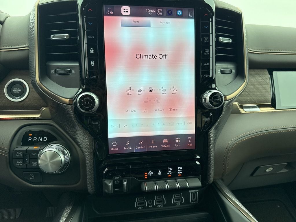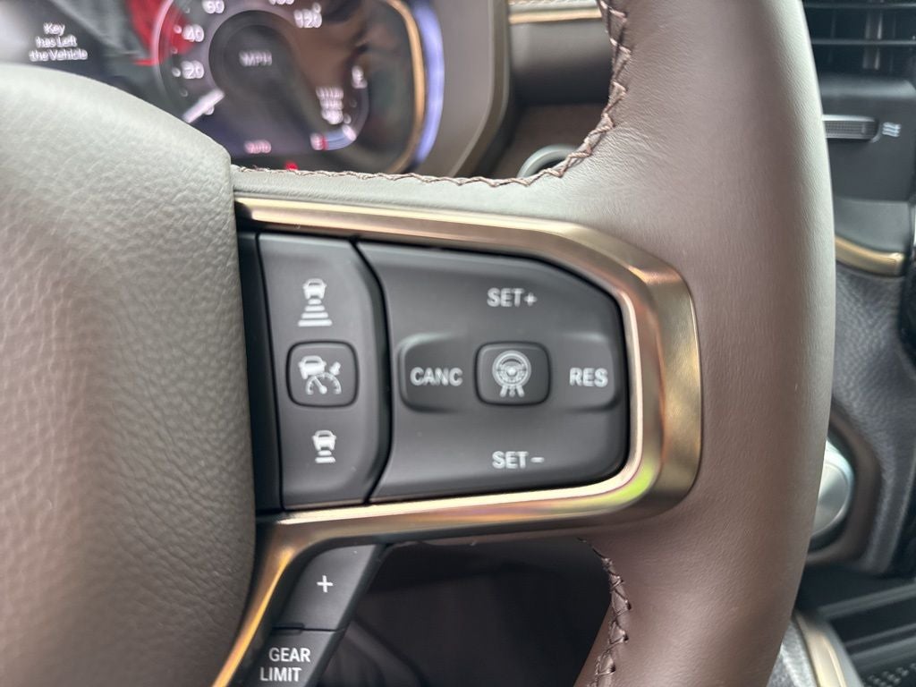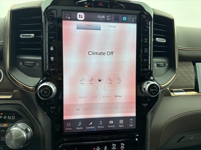 Body Color Bumper Group (Body Color Front Bumper and Body Color Rear Bumper with Step Pads), Quick Order Package 22K Longhorn (Grille Surround 4 Chrome Texture 5 Chrome, Longhorn Badge, Longhorn Instrument Cluster Theme 3, Premium Door Trim Panel, Premium Filigree Leather Seats, and Warm Chrome Key Fob), 19 Speakers, 3.92 Rear Axle Ratio, 4-Wheel Disc Brakes, 4G LTE Wi-Fi Hot Spot, ABS brakes, Active Noise Control System, Adjustable pedals, Air Conditioning, Alloy wheels, AM/FM radio, Apple CarPlay, Apple CarPlay/Android Auto, Audio memory, Auto High-beam Headlights, Auto Power-Folding Mirrors, Auto-dimming door mirrors, Auto-Dimming Exterior Driver Mirror, Auto-dimming Rear-View mirror, Auto-leveling suspension, Automatic temperature control, Bodyside moldings, Brake assist, Bumpers: chrome, Chrome Exterior Mirrors, Compass, Connected Travel and Traffic Services, Connectivity - US/Canada, Convex Wide-Angle Exterior Mirror Insert, Delay-off headlights, Disassociated Touchscreen Display, Dome Dual LED Reading Lamp, Driver door bin, Driver vanity mirror, Dual front impact airbags, Dual front side impact airbags, Dual-Pane Panoramic Sunroof, Electronic Stability Control, Exterior Mirrors Courtesy Lamps, Exterior Mirrors with Heating Element, Exterior Mirrors with Memory, Exterior Mirrors with Supplemental Signals, Exterior Parking Camera Rear, Front anti-roll bar, Front Bucket Seats, Front Center Armrest w/Storage, Front dual zone A/C, Front fog lights, Front License Plate Bracket, Front reading lights, Front wheel independent suspension, Fully automatic headlights, Garage door transmitter, Genuine wood console insert, Genuine wood dashboard insert, Genuine wood door panel insert, Global Telematics Box Module, Google Android Auto, GPS Antenna Input, GPS Navigation, HD Radio, Heated door mirrors, Heated front seats, Heated rear seats, Heated steering wheel, Illuminated entry, Integrated Center Stack Radio, Integrated Voice Command with Bluetooth®, Leather steering wheel, LED Dome/Reading Lamp, Low tire pressure warning, Memory seat, MyFlexCare Service Plan, Navigation System, Occupant sensing airbag, Outside temperature display, Overhead airbag, Overhead console, Panic alarm, Passenger door bin, Passenger vanity mirror, Pedal memory, Power door mirrors, Power driver seat, Power passenger seat, Power steering, Power windows, Premium Quilted Leather Bucket Seats, Radio data system, Radio: Uconnect 5 Navigation with 12.0 Display, Rain sensing wipers, Rear anti-roll bar, Rear reading lights, Rear seat center armrest, Rear step bumper, Rear window defroster, Remote keyless entry, Security system, SiriusXM Radio Service, SiriusXM with 360L, Speed control, Split folding rear seat, Steering wheel mounted audio controls, Tachometer, Telescoping steering wheel, Tilt steering wheel, Traction control, Trailer Brake Control, Trip computer, Turn signal indicator mirrors, USB Host Flip, Variably intermittent wipers, Ventilated front seats, Ventilated rear seats, Voltmeter, and Wheels: 20 x 9 Premium Paint/Polished.