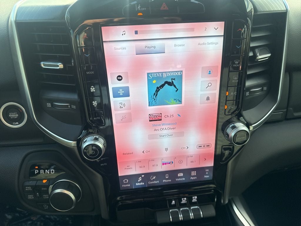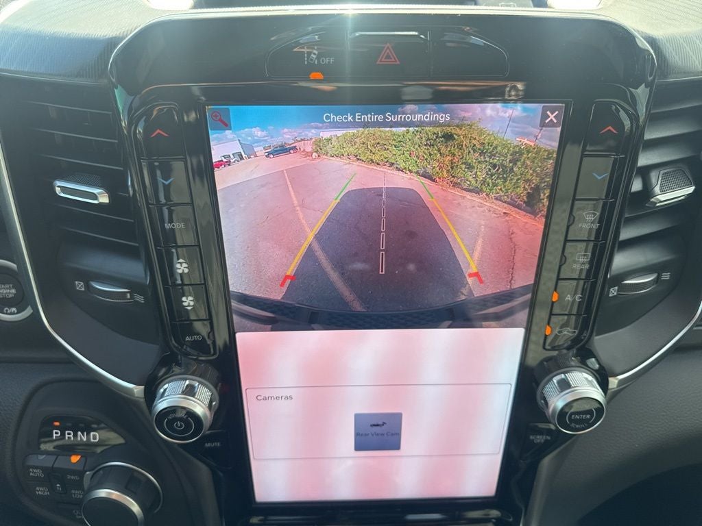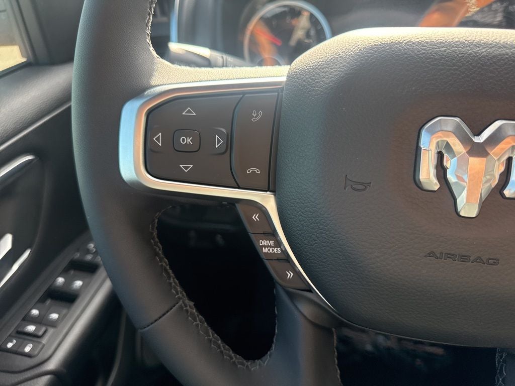 Big Horn Level 2 Equipment Group (115V Auxiliary Power Outlet, 115V Auxiliary Rear Power Outlet, 12 Touchscreen Display, 2nd Row in Floor Storage Bins, 3 Rear Seat Head Restraints, 4 Way Front Headrests, 400W Inverter, 4G LTE Wi-Fi Hot Spot, 9 Amplified Speakers with Subwoofer, Air Conditioning ATC with Dual Zone Control, Apple CarPlay, Auto Power-Folding Mirrors, Auto-Dimming Exterior Driver Mirror, Auto-Dimming Rear-View Mirror, Black Exterior Mirrors, Black Premium Power Mirrors, Body Color Fender Flares, Bucket Seats, Center Console Parts Module, Cluster 7.0 TFT Color Display, Configurable Drive Mode, Connected Travel and Traffic Services, Connectivity - US/Canada, Convex Wide-Angle Exterior Mirror Insert, Deluxe Cloth Bucket Seats, Disassociated Touchscreen Display, Exterior Mirrors Courtesy Lamps, Exterior Mirrors with Heating Element, Exterior Mirrors with Supplemental Signals, Front Seat Back Map Pockets, Full Length Floor Console, Global Telematics Box Module, Glove Box Lamp, Google Android Auto, GPS Antenna Input, GPS Navigation, HD Radio, Heated Front Seats, Heated Steering Wheel, Integrated Center Stack Radio, Integrated Voice Command with Bluetooth®, Leather Wrapped Steering Wheel, LED Dome Lamp with on/Off Switch, LED Footwell Lighting, Manual Adjust 4-Way Front Passenger Seat, Media Hub with 2 Charge Only USBs, Overhead LED Lamps, Power 2-Way Driver Lumbar Adjust, Power Adjust 8-Way Driver Seat, Power Adjustable Pedals, Premium Overhead Console, Radio: Uconnect 5 Navigation with 12.0 Display, Rear 60/40 Folding Seat, Rear Center Armrest, Rear Power Sliding Window, Rear Window Defroster, Remote Tailgate Release, Security Alarm, SiriusXM Radio Service, SiriusXM with 360L, Steering Wheel Mounted Audio Controls, Sun Visors with Illuminated Vanity Mirrors, Universal Garage Door Opener, and USB Host Flip), Night Edition (Accent Color Door Handles, Accent Color Premium Power Mirrors, Accent Color Tailgate Handle, Anti-Spin Differential Rear Axle, Black Exterior Truck Badging, Black Headlamp Bezels, Black Interior Accents, Black Painted Exterior Mirrors Caps, Black Tail Lamp Bezels, Body Color Front Bumper, Body Color Rear Bumper with Step Pads, Dual Exhaust with Black Tips, Grille Black Surround Black Mesh, RAM Grille Badge - Black, and Wheels: 20 x 9.0 Aluminum Painted Clad), Quick Order Package 27R Lone Star (Lone Star Badge), 33 Gallon Fuel Tank, 4-Wheel Disc Brakes, 48V Belt Starter Generator, 6 Speakers, ABS brakes, Air Conditioning, Alloy wheels, AM/FM radio, Apple CarPlay/Android Auto, Auto High-beam Headlights, Brake assist, Bumpers: chrome, Cloth Bucket Seats, Compass, Delay-off headlights, Driver door bin, Dual front impact airbags, Dual front side impact airbags, Electronic Stability Control, Front anti-roll bar, Front Bucket Seats, Front Center Armrest w/Storage, Front fog lights, Front License Plate Bracket, Front reading lights, Front wheel independent suspension, Fully automatic headlights, Heated door mirrors, Illuminated entry, Low tire pressure warning, Manual Adjust 4-Way Driver Seat, Manual Folding Exterior Mirrors, Occupant sensing airbag, Outside temperature display, Overhead airbag, Overhead console, Panic alarm, ParkView Rear Back-Up Camera, Passenger door bin, Passenger vanity mirror, Power door mirrors, Power steering, Power windows, Radio data system, Radio: Uconnect 5 W with 8.4 Display, RAM Grille Badge - Chrome, Rear anti-roll bar, Rear step bumper, Rear Wheelhouse Liners, Remote keyless entry, Speed control, Supplier Part Tracking (J-1), Tachometer, Telescoping steering wheel, Tilt steering wheel, Traction control, Trip computer, Variably intermittent wipers, and Voltmeter.