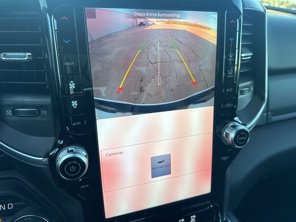Big Horn Level 2 Equipment Group (115V Auxiliary Power Outlet, 115V Auxiliary Rear Power Outlet, 12 Touchscreen Display, 2nd Row in Floor Storage Bins, 3 Rear Seat Head Restraints, 4 Way Front Headrests, 400W Inverter, 4G LTE Wi-Fi Hot Spot, 9 Amplified Speakers with Subwoofer, Air Conditioning ATC with Dual Zone Control, Apple CarPlay, Auto Power-Folding Mirrors, Auto-Dimming Exterior Driver Mirror, Auto-Dimming Rear-View Mirror, Black Exterior Mirrors, Black Premium Power Mirrors, Body Color Fender Flares, Bucket Seats, Center Console Parts Module, Cluster 7.0 TFT Color Display, Configurable Drive Mode, Connected Travel and Traffic Services, Connectivity - US/Canada, Convex Wide-Angle Exterior Mirror Insert, Deluxe Cloth Bucket Seats, Disassociated Touchscreen Display, Exterior Mirrors Courtesy Lamps, Exterior Mirrors with Heating Element, Exterior Mirrors with Supplemental Signals, Front Seat Back Map Pockets, Full Length Floor Console, Global Telematics Box Module, Glove Box Lamp, Google Android Auto, GPS Antenna Input, GPS Navigation, HD Radio, Heated Front Seats, Heated Steering Wheel, Integrated Center Stack Radio, Integrated Voice Command with Bluetooth®, Leather Wrapped Steering Wheel, LED Dome Lamp with on/Off Switch, LED Footwell Lighting, Manual Adjust 4-Way Front Passenger Seat, Media Hub with 2 Charge Only USBs, Overhead LED Lamps, Power 2-Way Driver Lumbar Adjust, Power Adjust 8-Way Driver Seat, Power Adjustable Pedals, Premium Overhead Console, Radio: Uconnect 5 Navigation with 12.0 Display, Rear 60/40 Folding Seat, Rear Center Armrest, Rear Power Sliding Window, Rear Window Defroster, Remote Tailgate Release, Security Alarm, SiriusXM Radio Service, SiriusXM with 360L, Steering Wheel Mounted Audio Controls, Sun Visors with Illuminated Vanity Mirrors, Universal Garage Door Opener, and USB Host Flip), Night Edition (Accent Color Door Handles, Accent Color Premium Power Mirrors, Accent Color Tailgate Handle, Anti-Spin Differential Rear Axle, Black Exterior Truck Badging, Black Headlamp Bezels, Black Interior Accents, Black Painted Exterior Mirrors Caps, Black Tail Lamp Bezels, Body Color Front Bumper, Body Color Rear Bumper with Step Pads, Dual Exhaust with Black Tips, Grille Black Surround Black Mesh, RAM Grille Badge - Black, and Wheels: 20 x 9.0 Aluminum Painted Clad), Quick Order Package 27Z Big Horn, 4-Wheel Disc Brakes, 48V Belt Starter Generator, 6 Speakers, ABS brakes, Air Conditioning, Alloy wheels, AM/FM radio, Apple CarPlay/Android Auto, Auto High-beam Headlights, Brake assist, Bumpers: chrome, Cloth Bucket Seats, Cluster 12 TFT Color Display, Compass, Delay-off headlights, Driver door bin, Dual front impact airbags, Dual front side impact airbags, Electronic Stability Control, Exterior 115V AC Outlet, Front anti-roll bar, Front Bucket Seats, Front Center Armrest w/Storage, Front fog lights, Front License Plate Bracket, Front reading lights, Front wheel independent suspension, Fully automatic headlights, Heated door mirrors, Illuminated entry, Low tire pressure warning, Manual Adjust 4-Way Driver Seat, Manual Folding Exterior Mirrors, MyFlexCare Service Plan, Occupant sensing airbag, Outside temperature display, Overhead airbag, Overhead console, Panic alarm, ParkView Rear Back-Up Camera, Passenger door bin, Passenger vanity mirror, Power door mirrors, Power steering, Power windows, Radio data system, Radio: Uconnect 5 W with 8.4 Display, RAM Grille Badge - Chrome, RamBox Cargo Management System, Rear anti-roll bar, Rear step bumper, Rear Wheelhouse Liners, Remote keyless entry, Speed control, Supplier Part Tracking (J-1), Tachometer, Telescoping steering wheel, Tilt steering wheel, Traction control, Trailer Brake Control, Trip computer, Variably intermittent wipers, and Voltmeter.