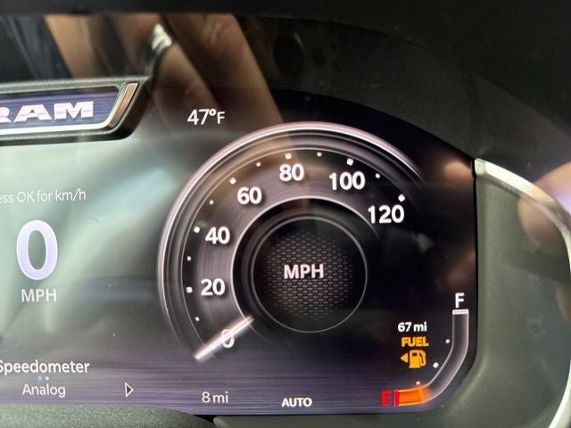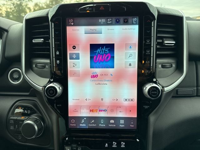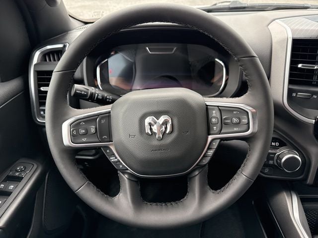 Big Horn Level 2 Equipment Group (115V Auxiliary Power Outlet, 115V Auxiliary Rear Power Outlet, 12 Touchscreen Display, 2nd Row in Floor Storage Bins, 3 Rear Seat Head Restraints, 4 Way Front Headrests, 400W Inverter, 4G LTE Wi-Fi Hot Spot, 9 Amplified Speakers with Subwoofer, Air Conditioning ATC with Dual Zone Control, Apple CarPlay, Auto Power-Folding Mirrors, Auto-Dimming Exterior Driver Mirror, Auto-Dimming Rear-View Mirror, Black Exterior Mirrors, Black Premium Power Mirrors, Body Color Fender Flares, Bucket Seats, Center Console Parts Module, Cluster 7.0 TFT Color Display, Configurable Drive Mode, Connected Travel and Traffic Services, Connectivity - US/Canada, Convex Wide-Angle Exterior Mirror Insert, Deluxe Cloth Bucket Seats, Disassociated Touchscreen Display, Exterior Mirrors Courtesy Lamps, Exterior Mirrors with Heating Element, Exterior Mirrors with Supplemental Signals, Front Seat Back Map Pockets, Full Length Floor Console, Global Telematics Box Module, Glove Box Lamp, Google Android Auto, GPS Antenna Input, GPS Navigation, HD Radio, Heated Front Seats, Heated Steering Wheel, Integrated Center Stack Radio, Integrated Voice Command with Bluetooth®, Leather Wrapped Steering Wheel, LED Dome Lamp with on/Off Switch, LED Footwell Lighting, Manual Adjust 4-Way Front Passenger Seat, Media Hub with 2 Charge Only USBs, Overhead LED Lamps, Power 2-Way Driver Lumbar Adjust, Power Adjust 8-Way Driver Seat, Power Adjustable Pedals, Premium Overhead Console, Radio: Uconnect 5 Navigation with 12.0 Display, Rear 60/40 Folding Seat, Rear Center Armrest, Rear Power Sliding Window, Rear Window Defroster, Remote Tailgate Release, Security Alarm, SiriusXM Radio Service, SiriusXM with 360L, Steering Wheel Mounted Audio Controls, Sun Visors with Illuminated Vanity Mirrors, Universal Garage Door Opener, and USB Host Flip), Night Edition (Accent Color Door Handles, Accent Color Premium Power Mirrors, Accent Color Tailgate Handle, Anti-Spin Differential Rear Axle, Black Exterior Truck Badging, Black Headlamp Bezels, Black Interior Accents, Black Painted Exterior Mirrors Caps, Black Tail Lamp Bezels, Body Color Front Bumper, Body Color Rear Bumper with Step Pads, Dual Exhaust with Black Tips, Grille Black Surround Black Mesh, RAM Grille Badge - Black, and Wheels: 20 x 9.0 Aluminum Painted Clad), Quick Order Package 27Z Big Horn, 4-Wheel Disc Brakes, 48V Belt Starter Generator, 6 Speakers, ABS brakes, Air Conditioning, Alloy wheels, AM/FM radio, Apple CarPlay/Android Auto, Auto High-beam Headlights, Brake assist, Bumpers: chrome, Cloth Bucket Seats, Cluster 12 TFT Color Display, Compass, Delay-off headlights, Driver door bin, Dual front impact airbags, Dual front side impact airbags, Electronic Stability Control, Front anti-roll bar, Front Bucket Seats, Front Center Armrest w/Storage, Front fog lights, Front License Plate Bracket, Front reading lights, Front wheel independent suspension, Fully automatic headlights, Heated door mirrors, Illuminated entry, Low tire pressure warning, Manual Adjust 4-Way Driver Seat, Manual Folding Exterior Mirrors, MyFlexCare Service Plan, Occupant sensing airbag, Outside temperature display, Overhead airbag, Overhead console, Panic alarm, ParkView Rear Back-Up Camera, Passenger door bin, Passenger vanity mirror, Power door mirrors, Power steering, Power windows, Radio data system, Radio: Uconnect 5 W with 8.4 Display, RAM Grille Badge - Chrome, Rear anti-roll bar, Rear step bumper, Rear Wheelhouse Liners, Remote keyless entry, Speed control, Supplier Part Tracking (J-1), Tachometer, Telescoping steering wheel, Tilt steering wheel, Traction control, Trailer Brake Control, Trip computer, Variably intermittent wipers, and Voltmeter.