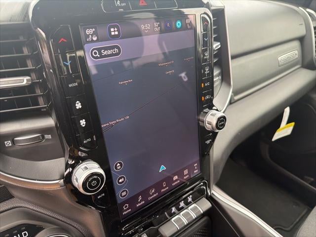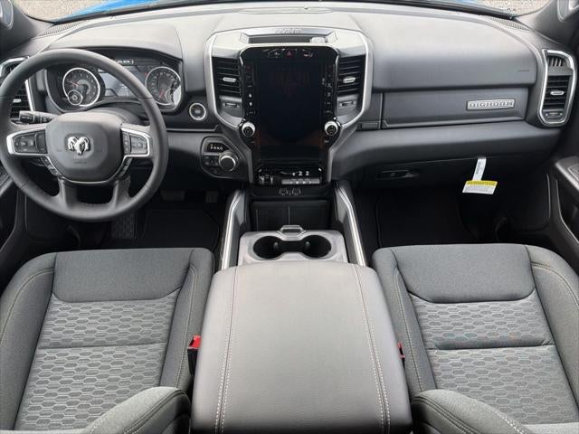 Big Horn Level 2 Equipment Group (115V Auxiliary Power Outlet, 115V Auxiliary Rear Power Outlet, 12 Touchscreen Display, 2nd Row in Floor Storage Bins, 3 Rear Seat Head Restraints, 4 Way Front Headrests, 400W Inverter, 4G LTE Wi-Fi Hot Spot, 9 Amplified Speakers with Subwoofer, Air Conditioning ATC with Dual Zone Control, Apple CarPlay, Auto Power-Folding Mirrors, Auto-Dimming Exterior Driver Mirror, Auto-Dimming Rear-View Mirror, Black Exterior Mirrors, Black Premium Power Mirrors, Body Color Fender Flares, Bucket Seats, Center Console Parts Module, Cluster 7.0 TFT Color Display, Configurable Drive Mode, Connected Travel and Traffic Services, Connectivity - US/Canada, Convex Wide-Angle Exterior Mirror Insert, Deluxe Cloth Bucket Seats, Disassociated Touchscreen Display, Exterior Mirrors Courtesy Lamps, Exterior Mirrors with Heating Element, Exterior Mirrors with Supplemental Signals, Front Seat Back Map Pockets, Full Length Floor Console, Global Telematics Box Module, Glove Box Lamp, Google Android Auto, GPS Antenna Input, GPS Navigation, HD Radio, Heated Front Seats, Heated Steering Wheel, Integrated Center Stack Radio, Integrated Voice Command with Bluetooth®, Leather Wrapped Steering Wheel, LED Dome Lamp with on/Off Switch, LED Footwell Lighting, Manual Adjust 4-Way Front Passenger Seat, Media Hub with 2 Charge Only USBs, Overhead LED Lamps, Power 2-Way Driver Lumbar Adjust, Power Adjust 8-Way Driver Seat, Power Adjustable Pedals, Premium Overhead Console, Radio: Uconnect 5 Navigation with 12.0 Display, Rear 60/40 Folding Seat, Rear Center Armrest, Rear Power Sliding Window, Rear Window Defroster, Remote Tailgate Release, Security Alarm, SiriusXM Radio Service, SiriusXM with 360L, Steering Wheel Mounted Audio Controls, Sun Visors with Illuminated Vanity Mirrors, Universal Garage Door Opener, and USB Host Flip), Night Edition (Accent Color Door Handles, Accent Color Premium Power Mirrors, Accent Color Tailgate Handle, Anti-Spin Differential Rear Axle, Black Exterior Truck Badging, Black Headlamp Bezels, Black Interior Accents, Black Painted Exterior Mirrors Caps, Black Tail Lamp Bezels, Body Color Front Bumper, Body Color Rear Bumper with Step Pads, Dual Exhaust with Black Tips, Grille Black Surround Black Mesh, RAM Grille Badge - Black, and Wheels: 20 x 9.0 Aluminum Painted Clad), Quick Order Package 27Z Big Horn, 33 Gallon Fuel Tank, 4-Wheel Disc Brakes, 48V Belt Starter Generator, 6 Speakers, ABS brakes, Air Conditioning, Alloy wheels, AM/FM radio, Apple CarPlay/Android Auto, Auto High-beam Headlights, Brake assist, Bumpers: chrome, Cloth Bucket Seats, Compass, Delay-off headlights, Driver door bin, Dual front impact airbags, Dual front side impact airbags, Electronic Stability Control, Front anti-roll bar, Front Bucket Seats, Front Center Armrest w/Storage, Front fog lights, Front reading lights, Front wheel independent suspension, Fully automatic headlights, Heated door mirrors, Illuminated entry, Low tire pressure warning, Manual Adjust 4-Way Driver Seat, Manual Folding Exterior Mirrors, MyFlexCare Service Plan, Occupant sensing airbag, Outside temperature display, Overhead airbag, Overhead console, Panic alarm, ParkView Rear Back-Up Camera, Passenger door bin, Passenger vanity mirror, Power door mirrors, Power steering, Power windows, Radio data system, Radio: Uconnect 5 W with 8.4 Display, RAM Grille Badge - Chrome, Rear anti-roll bar, Rear step bumper, Rear Wheelhouse Liners, Remote keyless entry, Speed control, Supplier Part Tracking (J-1), Tachometer, Telescoping steering wheel, Tilt steering wheel, Traction control, Trailer Brake Control, Trip computer, Variably intermittent wipers, and Voltmeter.