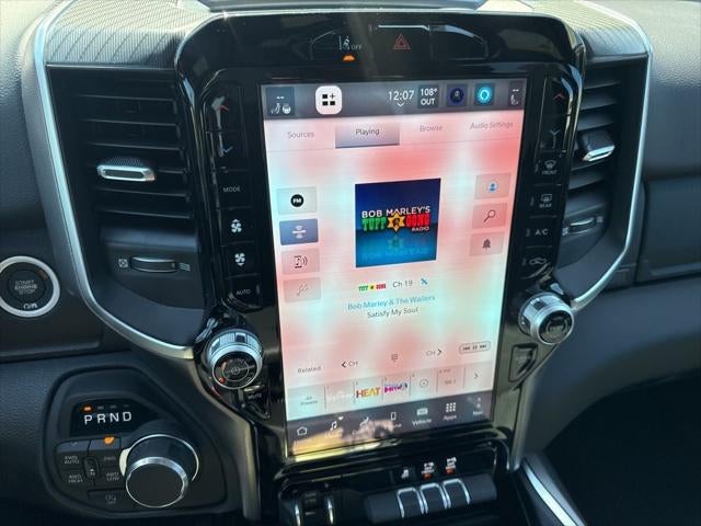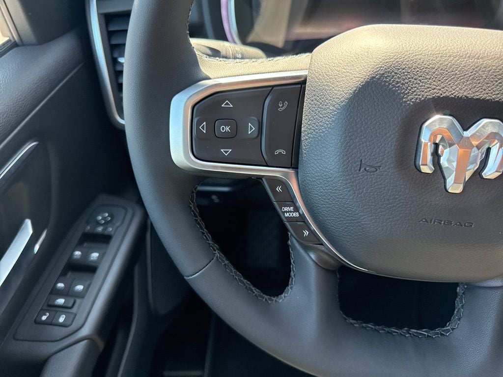 Big Horn Level 2 Equipment Group (115V Auxiliary Power Outlet, 115V Auxiliary Rear Power Outlet, 12 Touchscreen Display, 2nd Row in Floor Storage Bins, 3 Rear Seat Head Restraints, 4 Way Front Headrests, 400W Inverter, 4G LTE Wi-Fi Hot Spot, 9 Amplified Speakers with Subwoofer, Air Conditioning ATC with Dual Zone Control, Apple CarPlay, Auto Power-Folding Mirrors, Auto-Dimming Exterior Driver Mirror, Auto-Dimming Rear-View Mirror, Black Exterior Mirrors, Black Premium Power Mirrors, Body Color Fender Flares, Bucket Seats, Center Console Parts Module, Cluster 7.0 TFT Color Display, Configurable Drive Mode, Connected Travel and Traffic Services, Connectivity - US/Canada, Convex Wide-Angle Exterior Mirror Insert, Deluxe Cloth Bucket Seats, Disassociated Touchscreen Display, Exterior Mirrors Courtesy Lamps, Exterior Mirrors with Heating Element, Exterior Mirrors with Supplemental Signals, Front Seat Back Map Pockets, Full Length Floor Console, Global Telematics Box Module, Glove Box Lamp, Google Android Auto, GPS Antenna Input, GPS Navigation, HD Radio, Heated Front Seats, Heated Steering Wheel, Integrated Center Stack Radio, Integrated Voice Command with Bluetooth®, Leather Wrapped Steering Wheel, LED Dome Lamp with on/Off Switch, LED Footwell Lighting, Manual Adjust 4-Way Front Passenger Seat, Media Hub with 2 Charge Only USBs, Overhead LED Lamps, Power 2-Way Driver Lumbar Adjust, Power Adjust 8-Way Driver Seat, Power Adjustable Pedals, Premium Overhead Console, Radio: Uconnect 5 Navigation with 12.0 Display, Rear 60/40 Folding Seat, Rear Center Armrest, Rear Power Sliding Window, Rear Window Defroster, Remote Tailgate Release, Security Alarm, SiriusXM Radio Service, SiriusXM with 360L, Steering Wheel Mounted Audio Controls, Sun Visors with Illuminated Vanity Mirrors, Universal Garage Door Opener, and USB Host Flip), Night Edition (Accent Color Door Handles, Accent Color Premium Power Mirrors, Accent Color Tailgate Handle, Anti-Spin Differential Rear Axle, Black Exterior Truck Badging, Black Headlamp Bezels, Black Interior Accents, Black Painted Exterior Mirrors Caps, Black Tail Lamp Bezels, Body Color Front Bumper, Body Color Rear Bumper with Step Pads, Dual Exhaust with Black Tips, Grille Black Surround Black Mesh, RAM Grille Badge - Black, and Wheels: 20 x 9.0 Aluminum Painted Clad), Quick Order Package 27Z Big Horn, 33 Gallon Fuel Tank, 4-Wheel Disc Brakes, 48V Belt Starter Generator, 6 Speakers, ABS brakes, Air Conditioning, Alloy wheels, AM/FM radio, Apple CarPlay/Android Auto, Auto High-beam Headlights, Brake assist, Bumpers: chrome, Cloth Bucket Seats, Cluster 12 TFT Color Display, Compass, Delay-off headlights, Driver door bin, Dual front impact airbags, Dual front side impact airbags, Electronic Stability Control, Front anti-roll bar, Front Bucket Seats, Front Center Armrest w/Storage, Front fog lights, Front License Plate Bracket, Front reading lights, Front wheel independent suspension, Fully automatic headlights, Heated door mirrors, Illuminated entry, Low tire pressure warning, Manual Adjust 4-Way Driver Seat, Manual Folding Exterior Mirrors, MyFlexCare Service Plan, Occupant sensing airbag, Outside temperature display, Overhead airbag, Overhead console, Panic alarm, ParkView Rear Back-Up Camera, Passenger door bin, Passenger vanity mirror, Power door mirrors, Power steering, Power windows, Radio data system, Radio: Uconnect 5 W with 8.4 Display, RAM Grille Badge - Chrome, Rear anti-roll bar, Rear step bumper, Rear Wheelhouse Liners, Remote keyless entry, Speed control, Supplier Part Tracking (J-1), Tachometer, Telescoping steering wheel, Tilt steering wheel, Traction control, Trailer Brake Control, Trip computer, Variably intermittent wipers, and Voltmeter.