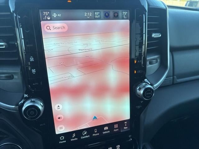 Big Horn Level 2 Equipment Group (115V Auxiliary Power Outlet, 115V Auxiliary Rear Power Outlet, 12 Touchscreen Display, 2nd Row in Floor Storage Bins, 3 Rear Seat Head Restraints, 4 Way Front Headrests, 400W Inverter, 4G LTE Wi-Fi Hot Spot, 9 Amplified Speakers with Subwoofer, Air Conditioning ATC with Dual Zone Control, Apple CarPlay, Auto Power-Folding Mirrors, Auto-Dimming Exterior Driver Mirror, Auto-Dimming Rear-View Mirror, Black Exterior Mirrors, Black Premium Power Mirrors, Body Color Fender Flares, Bucket Seats, Center Console Parts Module, Cluster 7.0 TFT Color Display, Configurable Drive Mode, Connected Travel and Traffic Services, Connectivity - US/Canada, Convex Wide-Angle Exterior Mirror Insert, Deluxe Cloth Bucket Seats, Disassociated Touchscreen Display, Exterior Mirrors Courtesy Lamps, Exterior Mirrors with Heating Element, Exterior Mirrors with Supplemental Signals, Front Seat Back Map Pockets, Full Length Floor Console, Global Telematics Box Module, Glove Box Lamp, Google Android Auto, GPS Antenna Input, GPS Navigation, HD Radio, Heated Front Seats, Heated Steering Wheel, Integrated Center Stack Radio, Integrated Voice Command with Bluetooth®, Leather Wrapped Steering Wheel, LED Dome Lamp with on/Off Switch, LED Footwell Lighting, Manual Adjust 4-Way Front Passenger Seat, Media Hub with 2 Charge Only USBs, Overhead LED Lamps, Power 2-Way Driver Lumbar Adjust, Power Adjust 8-Way Driver Seat, Power Adjustable Pedals, Premium Overhead Console, Radio: Uconnect 5 Navigation with 12.0 Display, Rear 60/40 Folding Seat, Rear Center Armrest, Rear Power Sliding Window, Rear Window Defroster, Remote Tailgate Release, Security Alarm, SiriusXM Radio Service, SiriusXM with 360L, Steering Wheel Mounted Audio Controls, Sun Visors with Illuminated Vanity Mirrors, Universal Garage Door Opener, and USB Host Flip), Night Edition (Accent Color Door Handles, Accent Color Premium Power Mirrors, Accent Color Tailgate Handle, Anti-Spin Differential Rear Axle, Black Exterior Truck Badging, Black Headlamp Bezels, Black Interior Accents, Black Painted Exterior Mirrors Caps, Black Tail Lamp Bezels, Body Color Front Bumper, Body Color Rear Bumper with Step Pads, Dual Exhaust with Black Tips, Grille Black Surround Black Mesh, RAM Grille Badge - Black, and Wheels: 20 x 9.0 Aluminum Painted Clad), Quick Order Package 27Z Big Horn, 33 Gallon Fuel Tank, 4-Wheel Disc Brakes, 48V Belt Starter Generator, 6 Speakers, ABS brakes, Air Conditioning, Alloy wheels, AM/FM radio, Apple CarPlay/Android Auto, Auto High-beam Headlights, Brake assist, Bumpers: chrome, Cloth Bucket Seats, Cluster 12 TFT Color Display, Compass, Delay-off headlights, Driver door bin, Dual front impact airbags, Dual front side impact airbags, Electronic Stability Control, Exterior 115V AC Outlet, Front anti-roll bar, Front Bucket Seats, Front Center Armrest w/Storage, Front fog lights, Front License Plate Bracket, Front reading lights, Front wheel independent suspension, Fully automatic headlights, Heated door mirrors, Illuminated entry, Low tire pressure warning, Manual Adjust 4-Way Driver Seat, Manual Folding Exterior Mirrors, MyFlexCare Service Plan, Occupant sensing airbag, Outside temperature display, Overhead airbag, Overhead console, Panic alarm, ParkView Rear Back-Up Camera, Passenger door bin, Passenger vanity mirror, Power door mirrors, Power steering, Power windows, Radio data system, Radio: Uconnect 5 W with 8.4 Display, RAM Grille Badge - Chrome, RamBox Cargo Management System, Rear anti-roll bar, Rear step bumper, Rear Wheelhouse Liners, Remote keyless entry, Speed control, Supplier Part Tracking (J-1), Tachometer, Telescoping steering wheel, Tilt steering wheel, Traction control, Trailer Brake Control, Trip computer, Variably intermittent wipers, and Voltmeter.