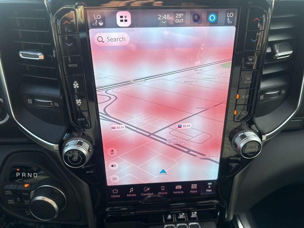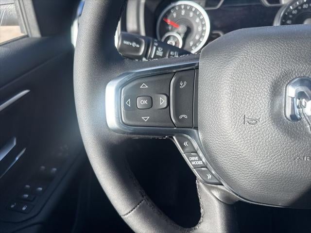 Big Horn Level 2 Equipment Group (115V Auxiliary Power Outlet, 115V Auxiliary Rear Power Outlet, 12 Touchscreen Display, 2nd Row in Floor Storage Bins, 3 Rear Seat Head Restraints, 4 Way Front Headrests, 400W Inverter, 4G LTE Wi-Fi Hot Spot, 9 Amplified Speakers with Subwoofer, Air Conditioning ATC with Dual Zone Control, Apple CarPlay, Auto Power-Folding Mirrors, Auto-Dimming Exterior Driver Mirror, Auto-Dimming Rear-View Mirror, Black Exterior Mirrors, Black Premium Power Mirrors, Body Color Fender Flares, Bucket Seats, Center Console Parts Module, Cluster 7.0 TFT Color Display, Configurable Drive Mode, Connected Travel and Traffic Services, Connectivity - US/Canada, Convex Wide-Angle Exterior Mirror Insert, Deluxe Cloth Bucket Seats, Disassociated Touchscreen Display, Exterior Mirrors Courtesy Lamps, Exterior Mirrors with Heating Element, Exterior Mirrors with Supplemental Signals, Front Seat Back Map Pockets, Full Length Floor Console, Global Telematics Box Module, Glove Box Lamp, Google Android Auto, GPS Antenna Input, GPS Navigation, HD Radio, Heated Front Seats, Heated Steering Wheel, Integrated Center Stack Radio, Integrated Voice Command with Bluetooth®, Leather Wrapped Steering Wheel, LED Dome Lamp with on/Off Switch, LED Footwell Lighting, Manual Adjust 4-Way Front Passenger Seat, Media Hub with 2 Charge Only USBs, Overhead LED Lamps, Power 2-Way Driver Lumbar Adjust, Power Adjust 8-Way Driver Seat, Power Adjustable Pedals, Premium Overhead Console, Radio: Uconnect 5 Navigation with 12.0 Display, Rear 60/40 Folding Seat, Rear Center Armrest, Rear Power Sliding Window, Rear Window Defroster, Remote Tailgate Release, Security Alarm, SiriusXM Radio Service, SiriusXM with 360L, Steering Wheel Mounted Audio Controls, Sun Visors with Illuminated Vanity Mirrors, Universal Garage Door Opener, and USB Host Flip), Night Edition (Accent Color Door Handles, Accent Color Premium Power Mirrors, Accent Color Tailgate Handle, Anti-Spin Differential Rear Axle, Black Exterior Truck Badging, Black Headlamp Bezels, Black Interior Accents, Black Painted Exterior Mirrors Caps, Black Tail Lamp Bezels, Body Color Front Bumper, Body Color Rear Bumper with Step Pads, Dual Exhaust with Black Tips, Grille Black Surround Black Mesh, RAM Grille Badge - Black, and Wheels: 20 x 9.0 Aluminum Painted Clad), Quick Order Package 27Z Big Horn, 4-Wheel Disc Brakes, 48V Belt Starter Generator, 6 Speakers, ABS brakes, Air Conditioning, Alloy wheels, AM/FM radio, Apple CarPlay/Android Auto, Auto High-beam Headlights, Brake assist, Bumpers: chrome, Cloth Bucket Seats, Compass, Delay-off headlights, Driver door bin, Dual front impact airbags, Dual front side impact airbags, Electronic Stability Control, Front anti-roll bar, Front Bucket Seats, Front Center Armrest w/Storage, Front fog lights, Front reading lights, Front wheel independent suspension, Fully automatic headlights, Heated door mirrors, Illuminated entry, Low tire pressure warning, Manual Adjust 4-Way Driver Seat, Manual Folding Exterior Mirrors, MyFlexCare Service Plan, Occupant sensing airbag, Outside temperature display, Overhead airbag, Overhead console, Panic alarm, ParkView Rear Back-Up Camera, Passenger door bin, Passenger vanity mirror, Power door mirrors, Power steering, Power windows, Radio data system, Radio: Uconnect 5 W with 8.4 Display, RAM Grille Badge - Chrome, Rear anti-roll bar, Rear step bumper, Rear Wheelhouse Liners, Remote keyless entry, Speed control, Supplier Part Tracking (J-1), Tachometer, Telescoping steering wheel, Tilt steering wheel, Traction control, Trailer Brake Control, Trip computer, Variably intermittent wipers, and Voltmeter.