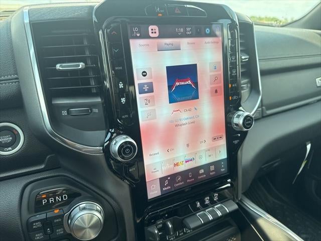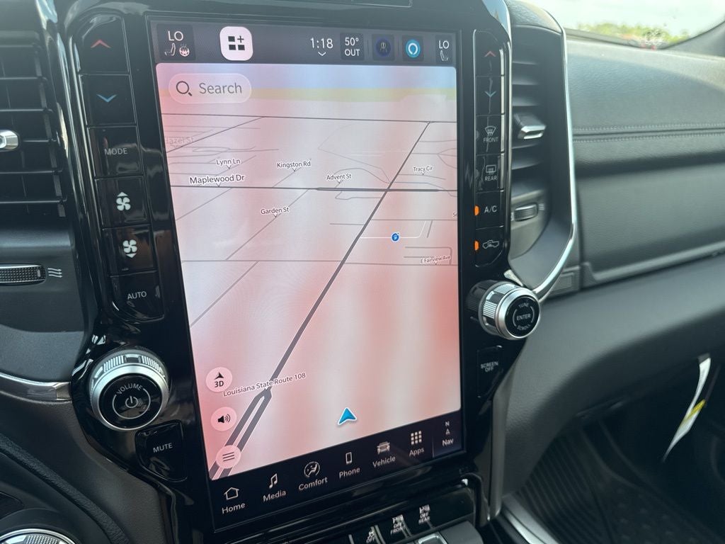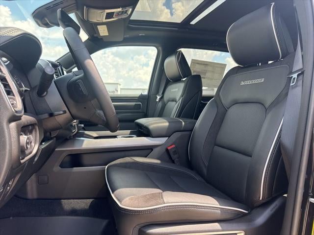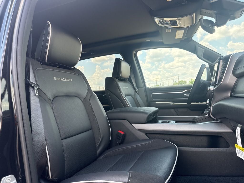 Laramie Level 1 Equipment Group (Rain Sensitive Windshield Wipers and Remote Tailgate Release), Laramie Southwest Edition (Accent Color Premium Power Mirrors, Auto Power-Folding Mirrors, Auto-Dimming Exterior Driver Mirror, Black Painted Exterior Mirrors Caps, Body Color Front Bumper, Body Color Rear Bumper with Step Pads, Convex Wide-Angle Exterior Mirror Insert, Dome Dual LED Reading Lamp, Dual-Pane Panoramic Sunroof, Exterior Mirrors Courtesy Lamps, Exterior Mirrors with Heating Element, Exterior Mirrors with Memory, Exterior Mirrors with Supplemental Signals, Grille Surround 3 Body Color Tex 4 Chrome, LED Dome/Reading Lamp, MOPAR Lockable Console Storage, Power Deployable Running Boards, RAM Grille Badge - Chrome, Tow Hooks, and Trailer Brake Control), Quick Order Package 21H Laramie, 10 Speakers, 3.55 Rear Axle Ratio, 4-Wheel Disc Brakes, 4G LTE Wi-Fi Hot Spot, ABS brakes, Active Noise Control System, Air Conditioning, Alloy wheels, AM/FM radio: SiriusXM with 360L, Anti-Spin Differential Rear Axle, Apple CarPlay/Android Auto, Audio memory, Auto High-beam Headlights, Auto-dimming door mirrors, Auto-dimming Rear-View mirror, Automatic temperature control, Brake assist, Bumpers: chrome, Chrome Exterior Mirrors, Compass, Connected Travel and Traffic Services, Connectivity - US/Canada, Delay-off headlights, Driver door bin, Driver vanity mirror, Dual front impact airbags, Dual front side impact airbags, Electronic Stability Control, Front anti-roll bar, Front Bucket Seats, Front Center Armrest w/Storage, Front dual zone A/C, Front fog lights, Front License Plate Bracket, Front reading lights, Front wheel independent suspension, Fully automatic headlights, Garage door transmitter, GPS Navigation, Heated door mirrors, Heated front seats, Heated rear seats, Heated steering wheel, Illuminated entry, Integrated Center Stack Radio, Integrated Voice Command with Bluetooth®, Leather steering wheel, Leather Trimmed Bucket Seats, Low tire pressure warning, Memory seat, MOPAR Front and Rear Rubber Floor Mats, Navigation System, Occupant sensing airbag, Off-Road Information Pages, Outside temperature display, Overhead airbag, Overhead console, Panic alarm, ParkView Rear Back-Up Camera, Passenger door bin, Passenger vanity mirror, Power door mirrors, Power driver seat, Power passenger seat, Power steering, Power windows, Radio data system, Radio: Uconnect 5 Navigation with 12.0 Display, Rear anti-roll bar, Rear reading lights, Rear seat center armrest, Rear step bumper, Remote keyless entry, Security system, SiriusXM Radio Service, SiriusXM with 360L, Speed control, Split folding rear seat, Steering wheel mounted audio controls, Tachometer, Telescoping steering wheel, Tilt steering wheel, Traction control, Trip computer, Turn signal indicator mirrors, USB Host Flip, Variably intermittent wipers, Ventilated front seats, Voltmeter, and Wheels: 20 x 9 Premium Paint/Polish.
