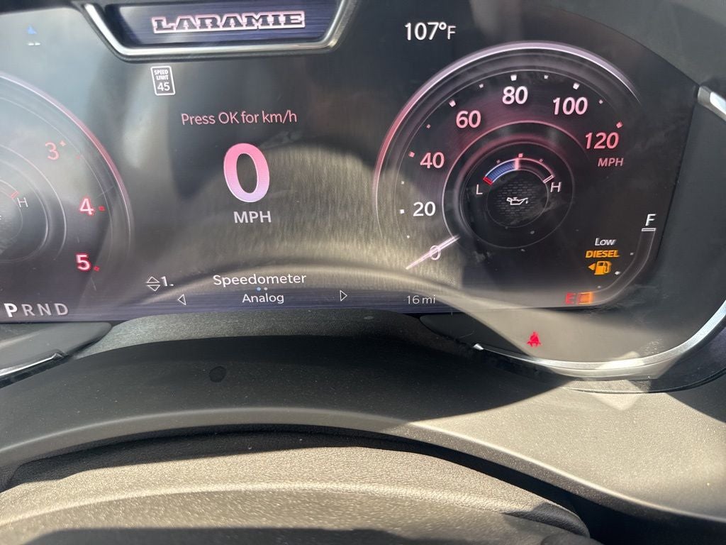 Laramie Level 2 Plus Equipment Group (#1 Seat Foam Cushion, 115V Auxiliary Rear Power Outlet, 14.4 Touchscreen Display, 2 Way Rear Headrest Seat, 4 Way Front Headrests, 4G LTE Wi-Fi Hot Spot, Active Lane Management System, Adaptive Steering System, Anti-Spin Differential Rear Axle, Apple CarPlay, Auto Dim Exterior Mirror, Auto High Beam Headlamp Control, Auto Power-Folding Mirrors, Auto-Dimming Exterior Passenger Mirror, Bucket Seats, Chrome Exterior Mirrors, Connectivity - US/Canada, Disassociated Touchscreen Display, Drowsy Driver Detection, Dual Wireless Charging Pad, Emergency Vehicle Alert System (EVAS), Exterior Mirrors Courtesy Lamps, Folding Flat Load Floor Storage, For Details, Visit DriveUconnect.com, For More Info, Call 800-643-2112, Front Seat Back Map Pockets, Full Length Upgraded Floor Console, Google Android Auto, GPS Antenna Input, GPS Navigation, HD Radio, Heated Front Seats, Heated Steering Wheel, High Back Seats, Leather Trimmed Bucket Seats, LED Bed Lighting, Mirror Running Lights, MOPAR Deployable Bed Step, Off-Road Info Pages, Power 2-Way Driver Lumbar Adjust, Power 2-Way Passenger Lumbar Adjust, Power Adjust 8-Way Driver Seat, Power Adjust 8-Way Front Passenger Seat, Power Adjust Mirrors, Power Deployable Running Boards, Power Telescoping Mirrors, Power-Adjustable Convex Aux Mirrors, Radio/Driver Seat/Mirrors/Pedals Memory, Rain Sensitive Windshield Wipers, Rear 60/40 Folding Seat, Remote Tailgate Release, Selectable Tire Fill Alert, SiriusXM Radio Service, Traffic Sign Recognition, Trailer Tow Pages, and Ventilated Front Seats), Night Edition (Black Exterior Mirrors, Black Exterior Truck Badging, Black Wheel Center Hub, Body Color Grille-Surround, Gloss Black Grille Billets/Accents, Sport Performance Hood, and Wheels: 20 x 8.0 Black Painted Aluminum), Quick Order Package 24H Laramie, 10 Speakers, 4-Wheel Disc Brakes, 5th Wheel/Gooseneck Towing Prep Group, ABS brakes, Air Conditioning, Alloy wheels, AM/FM radio: SiriusXM with 360L, Apple CarPlay/Android Auto, Auto-dimming Rear-View mirror, Automatic temperature control, Brake assist, Bumpers: body-color, Clearance Lamps, Compass, Cummins Turbo Diesel Badge, Delay-off headlights, Diesel Exhaust Brake, Driver door bin, Driver vanity mirror, Dual 730 Amp Maintenance Free Batteries, Dual front impact airbags, Dual front side impact airbags, Electronic Stability Control, Front anti-roll bar, Front Bumper Sight Shields, Front Center Armrest w/Storage, Front dual zone A/C, Front fog lights, Front License Plate Bracket, Front reading lights, Fully automatic headlights, Garage door transmitter, Heated door mirrors, Heated front seats, Heated Second Row Seats, Heated steering wheel, Heavy-Duty Engine Cooling, Illuminated entry, Leather Trim 40/20/40 Bench Seat, Low tire pressure warning, MyFlexCare Service Diesel, Navigation System, Occupant sensing airbag, Outside temperature display, Overhead airbag, Overhead console, Panic alarm, ParkView Rear Back-Up Camera, Passenger door bin, Passenger vanity mirror, Power door mirrors, Power driver seat, Power passenger seat, Power steering, Power windows, Radio data system, Rear anti-roll bar, Rear reading lights, Rear seat center armrest, Rear step bumper, Rear window defroster, Remote keyless entry, Security system, Selective Catalytic Reduction (Urea), Speed control, Split folding rear seat, Steering wheel mounted audio controls, Supplemental Heater, Tachometer, Tilt steering wheel, Traction control, Trip computer, Turn signal indicator mirrors, Variably intermittent wipers, and VoltmeteR.