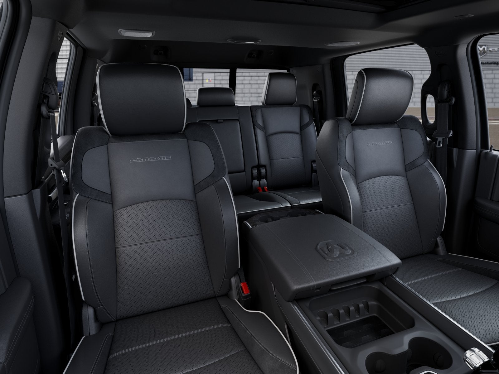 Laramie Level 2 Plus Equipment Group (#1 Seat Foam Cushion, 115V Auxiliary Rear Power Outlet, 14.4 Touchscreen Display, 17 Speaker Harman/Kardon Premium Sound, 2 Way Rear Headrest Seat, 4 Way Front Headrests, 4G LTE Wi-Fi Hot Spot, Active Lane Management System, Adaptive Steering System, Alexa Built-in, Anti-Spin Differential Rear Axle, Apple CarPlay, Auto Adjust in Reverse Exterior Mirrors, Auto Dim Exterior Mirror, Auto High Beam Headlamp Control, Auto Power-Folding Mirrors, Auto-Dimming Exterior Passenger Mirror, Bucket Seats, Center Stop Lamp with Cargo View Camera, Connected Travel and Traffic Services, Connectivity - US/Canada, Disassociated Touchscreen Display, Drowsy Driver Detection, Dual Wireless Charging Pad, Emergency Vehicle Alert System (EVAS), Exterior Mirrors Courtesy Lamps, Exterior Mirrors with Heating Element, Exterior Mirrors with Memory, Exterior Mirrors with Supplemental Signals, Foam Bottle Insert (door Trim Panel), For Details, Visit DriveUconnect.com, For More Info, Call 800-643-2112, Forward and Reverse Utility Lights, Front Seat Back Map Pockets, Full Length Upgraded Floor Console, Global Telematics Box Module, Google Android Auto, GPS Antenna Input, GPS Navigation, HD Radio, Heated Front Seats, Heated Steering Wheel, High Back Seats, Integrated Voice Command with Bluetooth®, Leather Trimmed Bucket Seats, LED Bed Lighting, Mirror Running Lights, MOPAR Deployable Bed Step, MOPAR Spray in Bedliner, Off-Road Information Pages, Power 2-Way Driver Lumbar Adjust, Power 2-Way Passenger Lumbar Adjust, Power Adjust 8-Way Driver Seat, Power Adjust 8-Way Front Passenger Seat, Power Adjust Mirrors, Power Adjustable Convex Aux Mirrors, Power Adjustable Pedals with Memory, Power Deployable Running Boards, Power Heated Fold Telescope Mirrors w/Memory, Power Telescoping Mirrors, Radio: Uconnect 5 Nav with 14.4 Display, Rain Sensitive Windshield Wipers, Rear 60/40 Folding Seat, Remote Tailgate Release, Selectable Tire Fill Alert, SiriusXM Radio Service, SiriusXM with 360L, Traffic Sign Recognition, and Trailer Tow Pages), Night Edition (Black Exterior Truck Badging, Black Wheel Center Hub, Body Color Grille Surround, Gloss Black Grille Billets/Accents, Sport Performance Hood, and Wheels: 20 x 8 Black Painted Aluminum), on Board Power System - 2.4KW (Dual Alternators Rated At 480 Amps), Quick Order Package 24H Laramie, 10 Speakers, 3.42 Axle Ratio, 4-Wheel Disc Brakes, 5th Wheel/Gooseneck Towing Prep Group, ABS brakes, Air Conditioning, Alloy wheels, AM/FM radio: SiriusXM with 360L, Apple CarPlay/Android Auto, Auto-dimming Rear-View mirror, Automatic temperature control, Brake assist, Bumpers: body-color, Chrome Exterior Mirrors, Clearance Lamps, Compass, Delay-off headlights, Driver door bin, Driver vanity mirror, Dual front impact airbags, Dual front side impact airbags, Electronic Stability Control, Front anti-roll bar, Front Center Armrest w/Storage, Front dual zone A/C, Front fog lights, Front License Plate Bracket, Front reading lights, Fully automatic headlights, Garage door transmitter, Heated door mirrors, Heated front seats, Heated Second Row Seats, Heated steering wheel, Illuminated entry, Leather Trim 40/20/40 Bench Seat, Low tire pressure warning, MyFlexCare Service Diesel, Navigation System, Occupant sensing airbag, Outside temperature display, Overhead airbag, Overhead console, Panic alarm, ParkView Rear Back-Up Camera, Passenger door bin, Passenger vanity mirror, Power door mirrors, Power driver seat, Power passenger seat, Power steering, Power Sunroof, Power windows, Radio data system, Radio: Uconnect 5 Navigation with 12.0 Display, Radio/Driver Seat/Mirrors/Pedals Memory, Rear anti-roll bar, Rear reading lights, Rear seat center armrest, Rear step bumper, Rear window defroster, Remote keyless entry, Security system, Speed control, Split folding rear seat, Steering wheel mounted audio controls, Tach