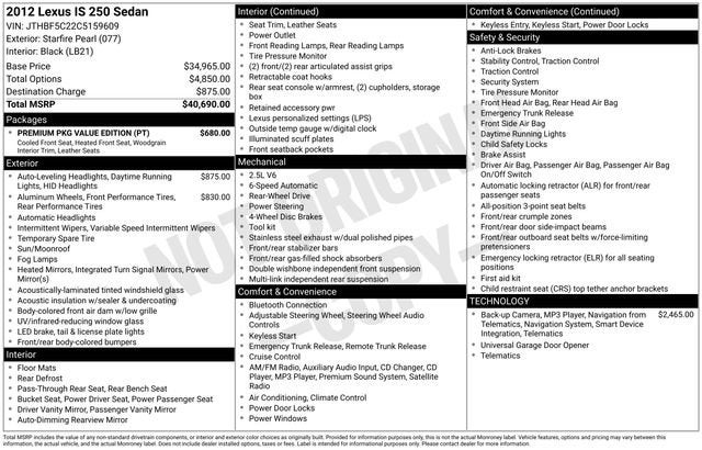 2012 Lexus IS 250 4DR SPT SDN RWD M
