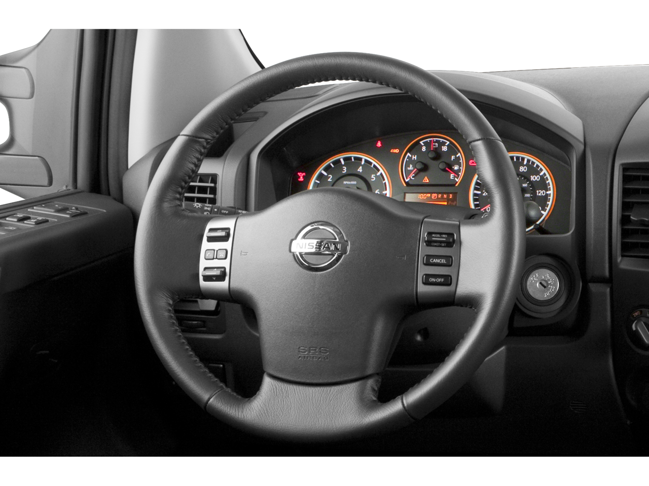 10 Speakers, 2.937 Axle Ratio, 20 Aluminum Alloy Wheels, 20 Chrome-Plated Alloy Wheels, 4-Wheel Disc Brakes, ABS brakes, Activation Disclaimer, Adjustable pedals, Air Conditioning, Alloy wheels, AM/FM radio: SiriusXM, Anti-whiplash front head restraints, Auto-dimming door mirrors, Auto-dimming Rear-View mirror, Automatic temperature control, Bodyside moldings, Brake assist, Bumpers: chrome, CD player, Chrome Billet Grille Insert, Chrome Step Rails, Delay-off headlights, Driver door bin, Driver vanity mirror, Driver's Seat Mounted Armrest, Dual front impact airbags, Dual front side impact airbags, Electronic Stability Control, Exterior Parking Camera Rear, Front anti-roll bar, Front Bucket Seats, Front dual zone A/C, Front fog lights, Front reading lights, Front wheel independent suspension, Garage door transmitter: HomeLink, Heated door mirrors, Heated Dual Front Captain's Chairs, Heated front seats, Illuminated entry, Leather Shift Knob, Leather steering wheel, Leather-Appointed Seating Surfaces, Low tire pressure warning, Memory seat, MP3 decoder, Navigation System, Nissan Connect w/Navigation, Occupant sensing airbag, Outside temperature display, Overhead airbag, Overhead console, Panic alarm, Passenger door bin, Passenger seat mounted armrest, Passenger vanity mirror, Pedal memory, Power door mirrors, Power driver seat, Power passenger seat, Power steering, Power windows, Radio data system, Radio: Rockford Fosgate Premium Audio System, Rear Parking Sensors, Rear reading lights, Rear seat center armrest, Rear step bumper, Rear window defroster, Remote keyless entry, Security system, Speed control, Speed-sensing steering, Speed-Sensitive Wipers, Split folding rear seat, Steering wheel mounted audio controls, Tachometer, Texas Titan Badging, Tilt steering wheel, Traction control, Trip computer, Turn signal indicator mirrors, Variably intermittent wipers, and Voltmeter.