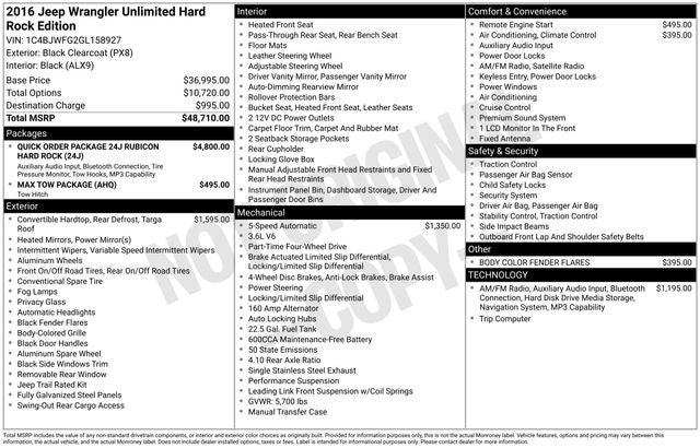 Whether you're planning a weekend getaway or tackling your daily commute, this 2016 Jeep Wrangler Unlimited Rubicon is the ultimate companion. With its exceptional off-road capabilities, advanced technology, and premium features, it's the perfect blend of rugged capability and refined comfort.
