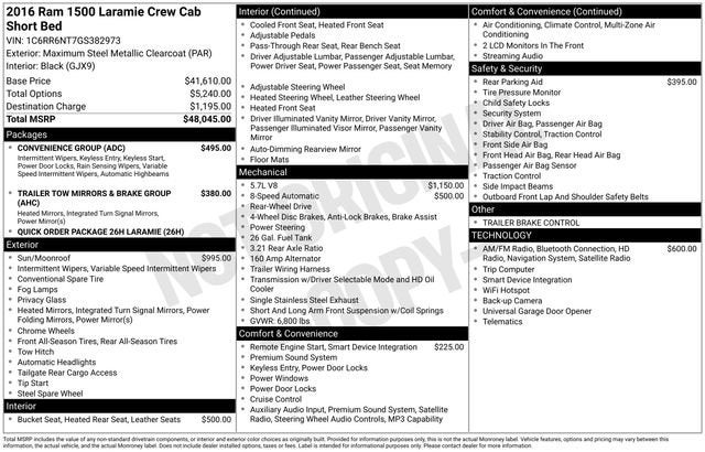 Maximum Steel Metallic Clearcoat 2016 Ram 1500 Laramie RWD 8-Speed Automatic HEMI 5.7L V8 Multi Displacement VVTRecent Arrival!Call us today to schedule your VIP test drive!