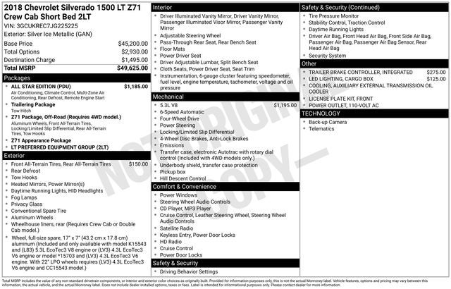 6-Speed Automatic Electronic with Overdrive, 4WD, Dark Ash With Jet Black Interior Accents Cloth. Silver Ice Metallic 2018 Chevrolet Silverado 1500 LT LT2 4WD 6-Speed Automatic Electronic with Overdrive EcoTec3 5.3L V8