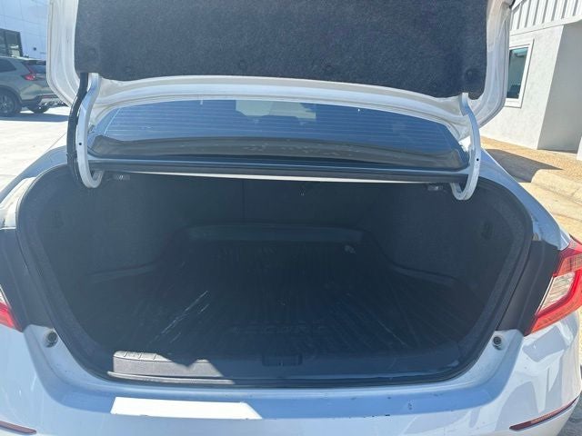 The interior of this Accord Sport is equally impressive, with premium cloth seating, a leather-wrapped steering wheel, and a 180-Watt AM/FM Audio System with Apple CarPlay and Android Auto integration. The spacious cabin and split-folding rear seats offer ample room for passengers and cargo, ensuring a comfortable and versatile driving experience.