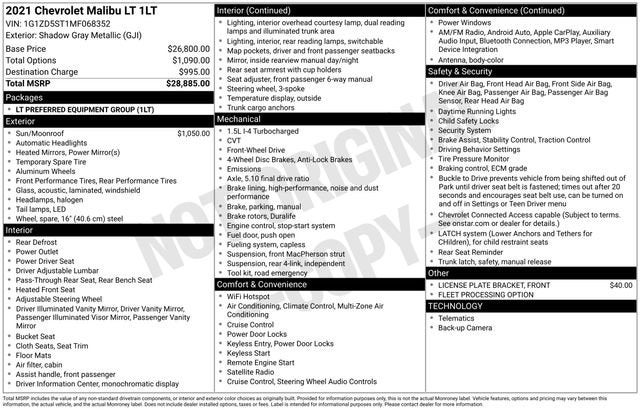 Discover the perfect blend of style, comfort, and performance in this exceptional 2021 Chevrolet Malibu LT. With its sleek gray exterior and well-appointed interior, this midsize sedan is sure to turn heads and impress.
