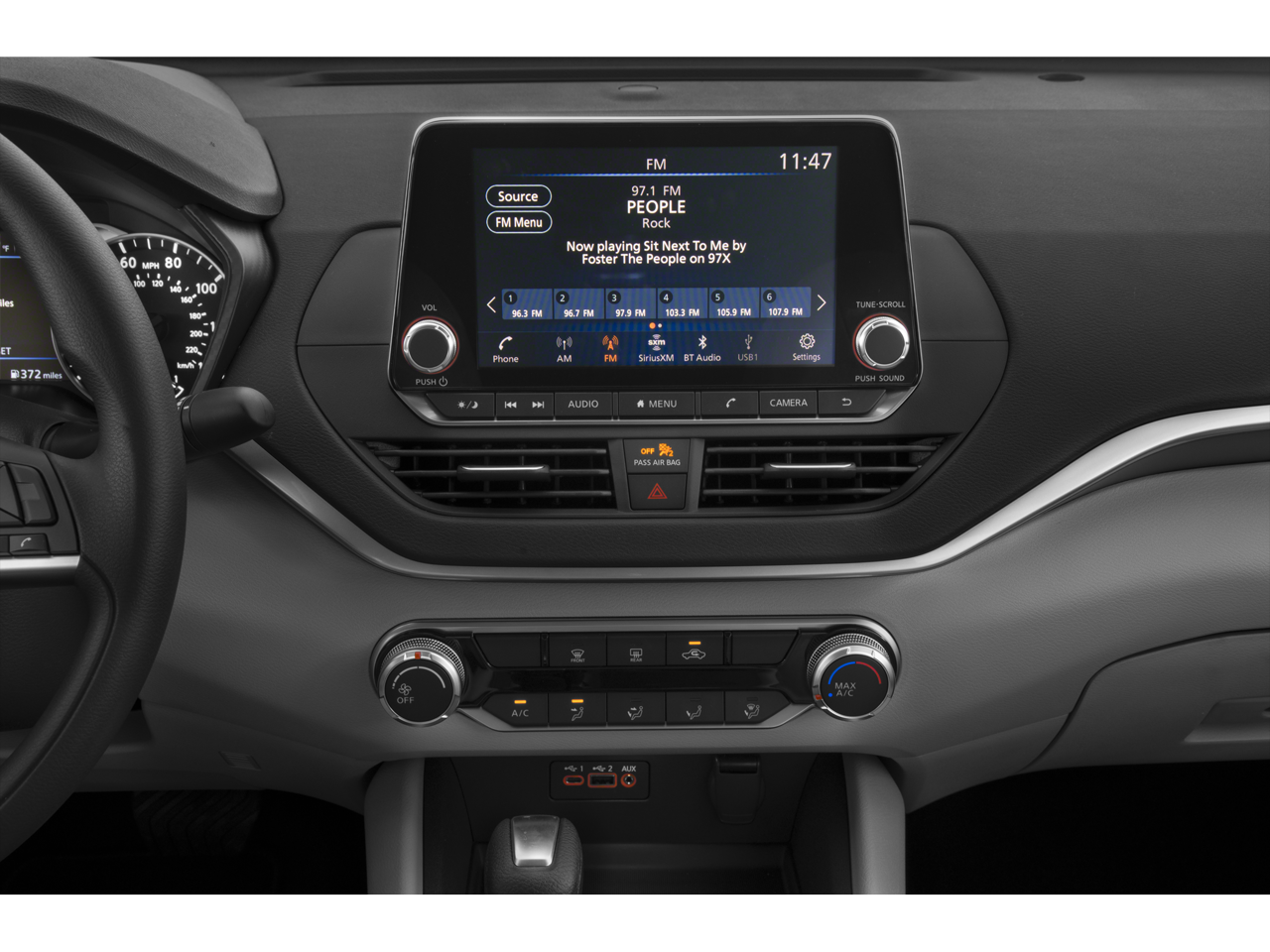 - Radio: AM/FM Audio System -inc: RDS, MP3, aux-in, 6 speakers, 7" color touch-screen display audio system, Bluetooth® hands-free phone system, streaming audio via Bluetooth®, hands-free text messaging assistant, 1 front illuminated USB ports (type-A) for compatible devices, Siri Eyes Free/Google Assistant voice recognition