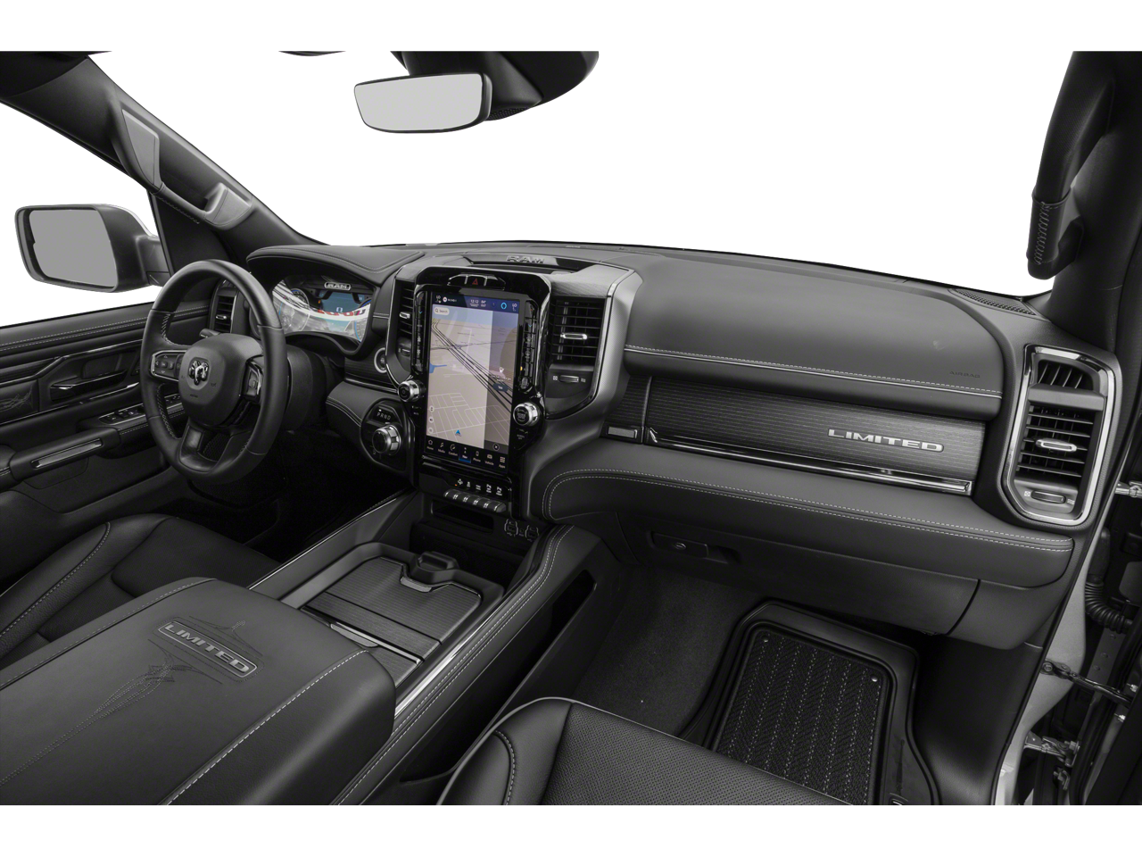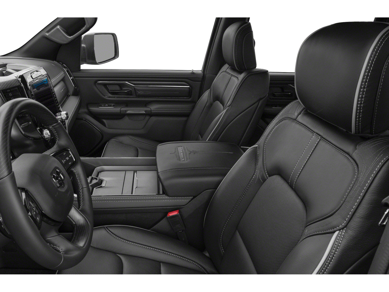 Body Color Bumper Group (Body Color Front Bumper and Body Color Rear Bumper w/Step Pads), Limited 10th Anniversary Edition (4 Way Front Headrests, Bucket Seats, Driver Seat Memory, Front Seat Back Map Pockets, Full Length Premium Floor Console, harman/kardon 19 Speaker Premium Sound, Heated Front Seats, Heated Second Row Seats, Heated Steering Wheel, Instrument Cluster Theme 8, MOPAR 4 Adjustable Cargo Tie-Down Hooks, MOPAR Bright Pedal Kit, MOPAR Deployable Bed Step Center Mount, Multi-Function Tailgate, Power 4-Way Driver Lumbar Adjust, Power 4-Way Passenger Lumbar Adjust, Power 8-Way Driver & Passenger Seats, Premium Quilted Leather Bucket Seats, Rear 60/40 Folding Split Recline Seat, Rotary Shifter-Jeweled, Suede Headliner, Tailgate Ajar Warning Lamp, Ventilated Front Seats, and Ventilated Rear Seats), Limited Level 1 Equipment Group (Adaptive Cruise Control w/Stop & Go, Digital Rearview Mirror, Heads-Up Display, Lane Keep Assist, LED CHMSL Lamp, Parallel & Perp Park Assist w/Stop, Pedestrian Emergency Braking, and Surround View Camera System), Quick Order Package 27M Limited, Trailer Tow Group (B) (DISC) (Trailer Brake Control, Trailer Light Check, and Trailer Reverse Steering Control), 10 Speakers, 33 Gallon Fuel Tank, 4-Wheel Disc Brakes, 48V Belt Starter Generator, ABS brakes, Active Noise Control System, Adjustable pedals, Air Conditioning, Alloy wheels, AM/FM radio: SiriusXM with 360L, Apple CarPlay/Android Auto, Audio memory, Auto High-beam Headlights, Auto-dimming door mirrors, Auto-Dimming Exterior Driver Mirror, Auto-Dimming Exterior Passenger Mirror, Auto-dimming Rear-View mirror, Auto-leveling suspension, Automatic temperature control, Bodyside moldings, Brake assist, Bumpers: chrome, Chrome Exterior Mirrors, Compass, Convex Wide-Angle Mirror Insert, Delay-off headlights, Driver door bin, Driver vanity mirror, Dual front impact airbags, Dual front side impact airbags, Dual Rear Exhaust w/Bright Tips, E-Locker Rear Axle, Electronic Stability Control, Exterior 115V AC Outlet, Exterior Mirrors Courtesy Lamps, Exterior Mirrors w/Heating Element, Exterior Mirrors w/Memory, Exterior Mirrors w/Supplemental Signals, Front anti-roll bar, Front Bucket Seats, Front Center Armrest w/Storage, Front dual zone A/C, Front fog lights, Front License Plate Bracket, Front reading lights, Front wheel independent suspension, Fully automatic headlights, Garage door transmitter, Genuine wood console insert, Genuine wood dashboard insert, Genuine wood door panel insert, Heated door mirrors, Heated front seats, Heated rear seats, Heated steering wheel, Heavy-Duty Engine Cooling, HEMI Badge, Illuminated entry, Leather steering wheel, Low tire pressure warning, Manufacturer's Statement of Origin, Memory seat, Navigation System, Occupant sensing airbag, Outside temperature display, Overhead airbag, Overhead console, Panic alarm, ParkView Rear Back-Up Camera, Passenger door bin, Passenger vanity mirror, Pedal memory, Power door mirrors, Power driver seat, Power passenger seat, Power steering, Power windows, Power-Folding Mirrors, Premium Leather Trimmed Bucket Seats, Radio data system, Radio: Uconnect 5 Nav w/12.0 Display, Rain sensing wipers, RamBox Cargo Management System, Rear anti-roll bar, Rear seat center armrest, Rear step bumper, Rear window defroster, Remote keyless entry, Security system, Speed control, Split folding rear seat, Steering wheel mounted audio controls, Tachometer, Telescoping steering wheel, Tilt steering wheel, Traction control, Trip computer, Turn signal indicator mirrors, Variably intermittent wipers, Ventilated front seats, Voltmeter, Wheels: 20 x 9 Aluminum Painted/Polished, and Wheels: 20 x 9 Polished w/Inserts (DISC)