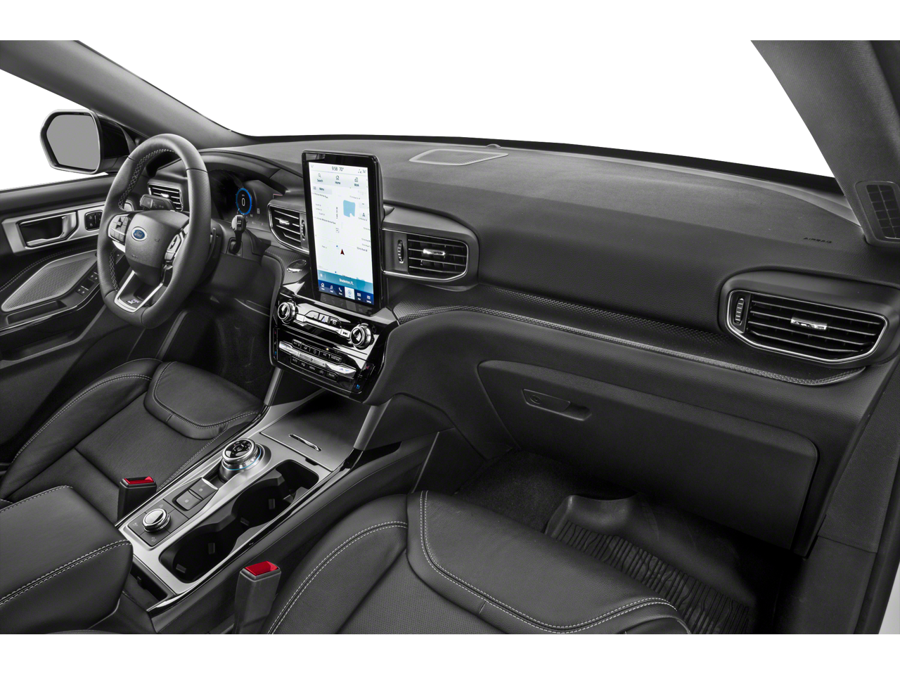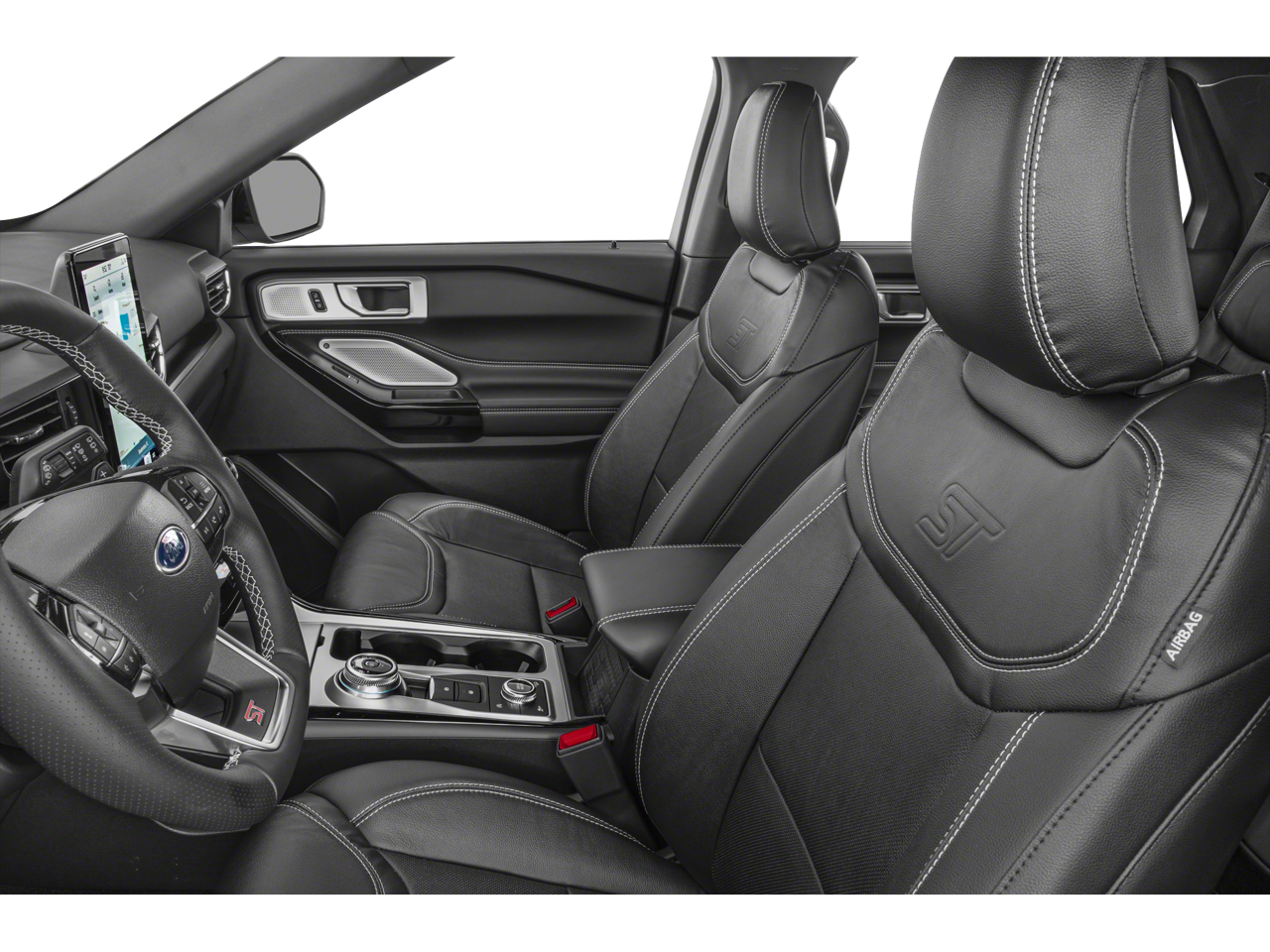 Equipment Group 401A, Ford Co-Pilot360 Assist+ (Evasive Steering Assist, Intelligent Adaptive Cruise Control, Speed Sign Recognition, and Voice-Activated Touchscreen Navigation System), ST High Package (110V/150W AC Power Outlet, 360-Degree Camera w/Split View, Auto-Dimming Rearview Mirror (Interior), Front Parking Sensors, Front Rain-Sensing Wipers, Memory Driver's Seat, Power Tilt/Telescoping Steering Column, Radio: B&O Sound System by Bang & Olufsen, Reverse Brake Assist, Second Row Heated Seats, Sideview Mirrors w/Gloss Black Caps, Third Row PowerFold (Folds Flat), Universal Garage Door Opener (UGDO), and Wireless Charging Pad), ST Street Pack (Performance Front & Rear Brakes and Wheels: 21 Aluminum), Technology Package (10.1 LCD Capacitive Portrait Touchscreen and 2 Additional Speakers), 4WD, 20 Machined Aluminum w/Painted Pockets Wheels, 3.58 Non-Limited-Slip Rear Axle Ratio, 360-Degree Camera Credit, 3rd row seats: bench, 4-Wheel Disc Brakes, 4G LTE Wi-Fi Hotspot Credit, 6 Speakers, ABS brakes, Air Conditioning, Alloy wheels, AM/FM radio: SiriusXM, AM/FM Stereo, Auto High-beam Headlights, Automatic temperature control, Brake assist, Bumpers: body-color, Compass, Delay-off headlights, Driver door bin, Driver vanity mirror, Dual front impact airbags, Dual front side impact airbags, Electronic Stability Control, Emergency communication system: SYNC 3 911 Assist, Exterior Parking Camera Rear, FordPass Connect, Four wheel independent suspension, Front anti-roll bar, Front Bucket Seats, Front Center Armrest, Front dual zone A/C, Front fog lights, Front reading lights, Fully automatic headlights, Heated door mirrors, Heated front seats, Heated steering wheel, Illuminated entry, Knee airbag, Leather Htd/Ventilated Sport Captain's Chairs, Leather steering wheel, Low tire pressure warning, Memory seat, Occupant sensing airbag, Outside temperature display, Overhead airbag, Overhead console, Panic alarm, Passenger door bin, Passenger vanity mirror, Power door mirrors, Power driver seat, Power Liftgate, Power passenger seat, Power steering, Power windows, Rear air conditioning, Rear anti-roll bar, Rear reading lights, Rear window defroster, Rear window wiper, Remote keyless entry, Reverse Brake Assist Credit, Security system, SelectShift Capability w/Paddle Shifters, Speed control, Speed-sensing steering, Speed-Sensitive Wipers, Split folding rear seat, Spoiler, Sport steering wheel, Steering wheel mounted audio controls, SYNC 3 Communications & Entertainment System, SYNC 3/Apple CarPlay/Android Auto, Tachometer, Telescoping steering wheel, Tilt steering wheel, Traction control, Trip computer, Twin Panel Moonroof, Variably intermittent wipers, and Ventilated front seats.