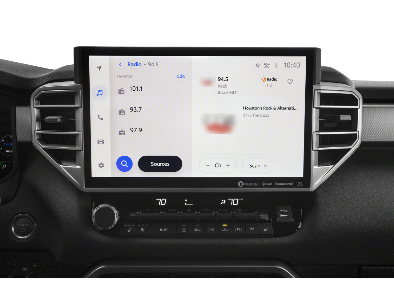 The Tundra Hybrid Limited is packed with advanced safety and convenience features to keep you and your passengers secure and comfortable. Enjoy the peace of mind of the Toyota Safety Sense suite of driver-assist technologies, including Pre-Collision System with Pedestrian Detection, Lane Departure Alert, and Automatic High Beams. The Panoramic View Monitor provides a 360-degree bird's-eye view, making maneuvering in tight spaces a breeze.