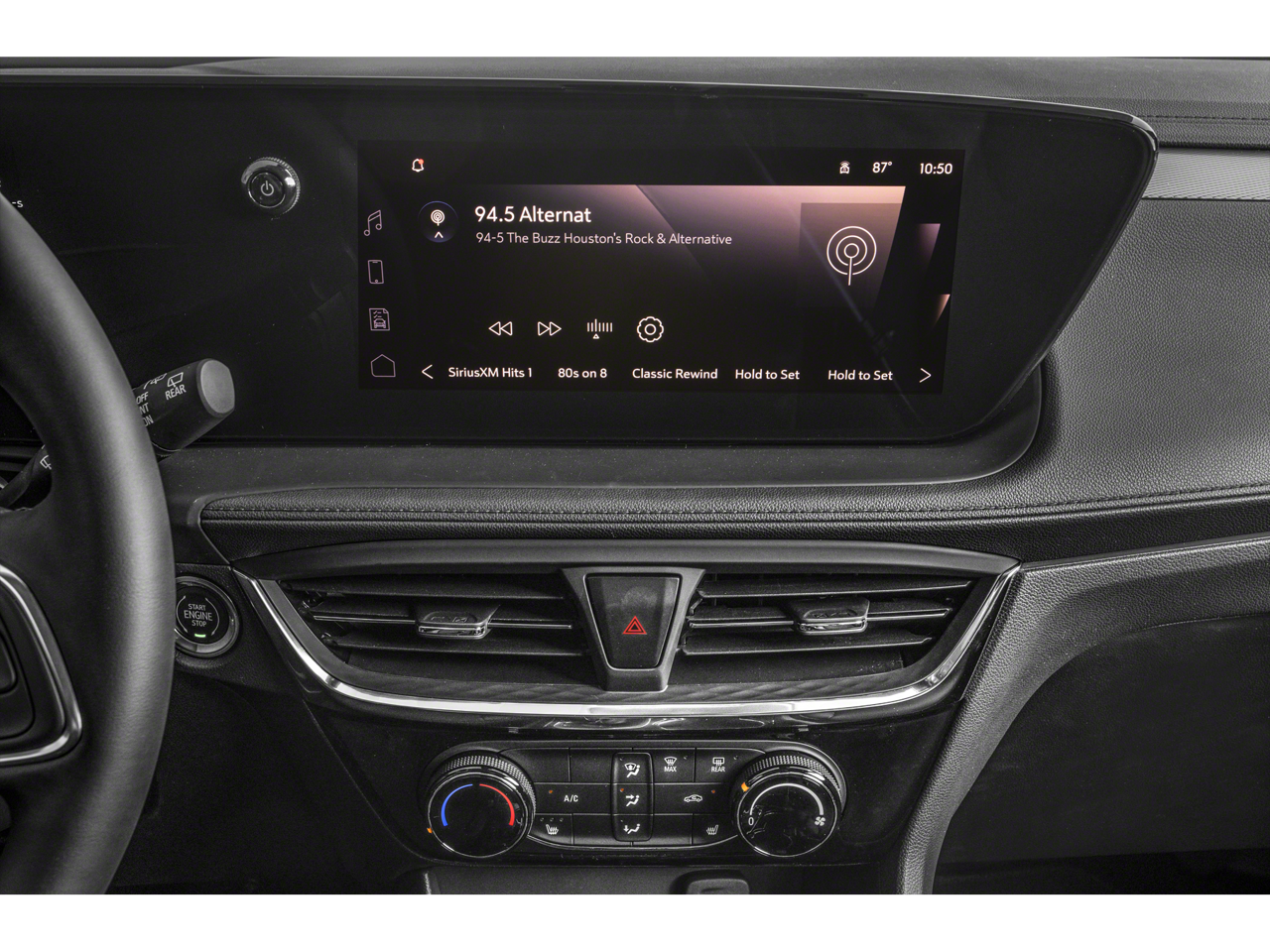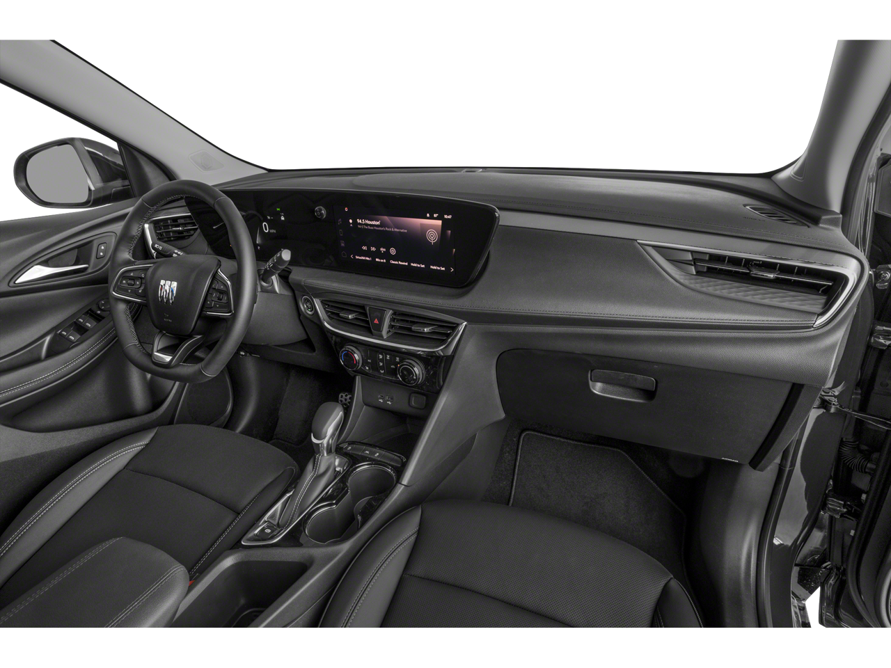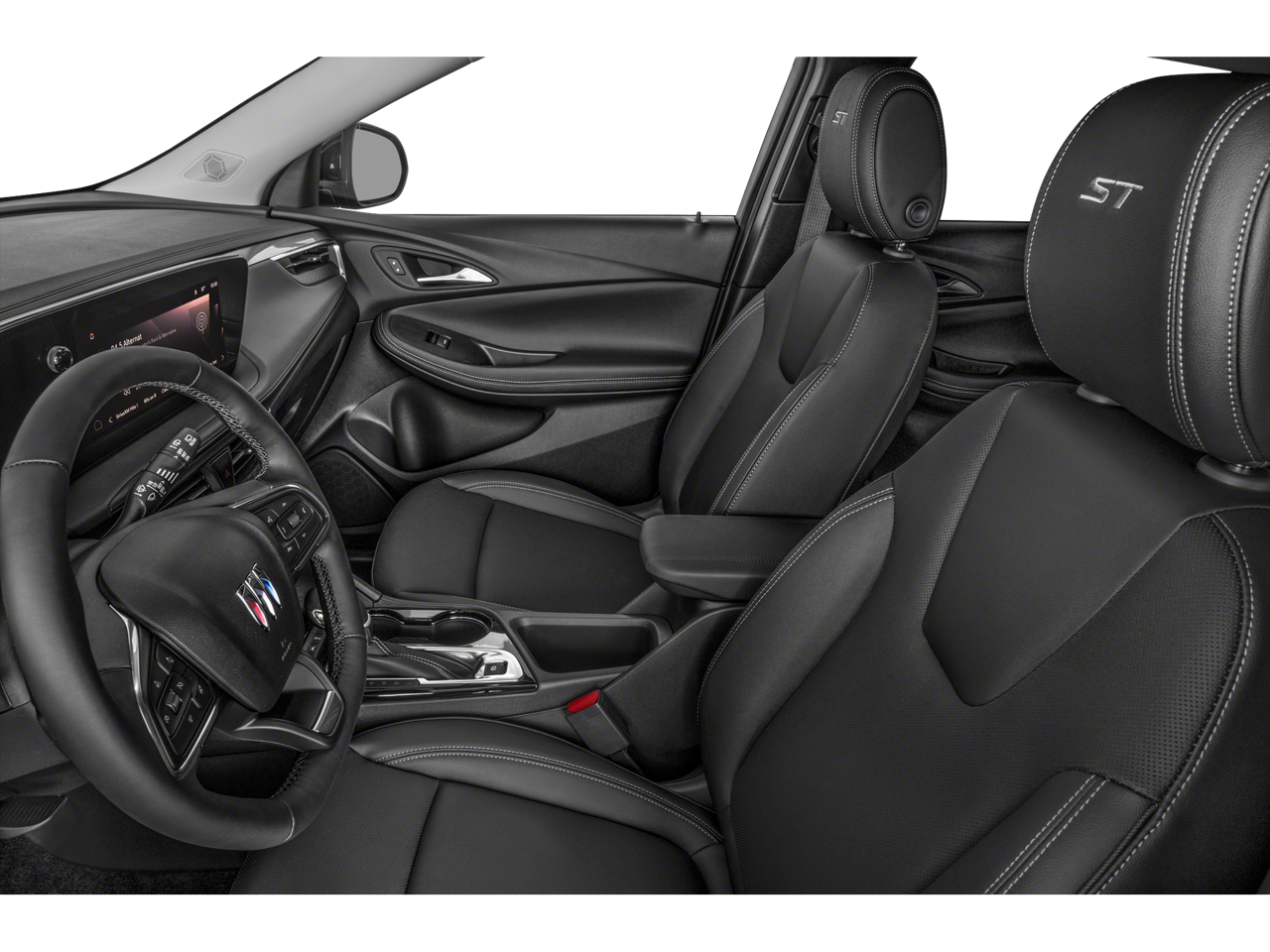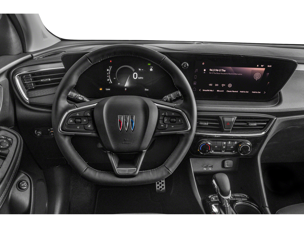 Experience Buick Package (Power Panoramic Tilt-Sliding Moonroof and Wheels: 19 Gloss Black Aluminum), Preferred Equipment Group 1SD, 2 USB Ports (1 Type-A, 1 Type-C), 4-Way Manual Passenger Seat Adjuster, 4-Wheel Disc Brakes, 5.45 Final Drive Axle Ratio, 6 Speakers, 6-Way Manual Driver Seat Adjuster, ABS brakes, Air Conditioning, All-Weather Floor Liners (LPO), Alloy wheels, AM/FM radio: SiriusXM, Auto High-beam Headlights, Automatic temperature control, Brake assist, Bumpers: body-color, Compass, Delay-off headlights, Driver door bin, Driver vanity mirror, Dual front impact airbags, Dual front side impact airbags, Electronic Stability Control, Emergency communication system: OnStar and Buick connected services capable, Enhanced Performance 6-Speaker System, Front anti-roll bar, Front Bucket Seats, Front Center Armrest, Front License Plate Bracket, Front reading lights, Front wheel independent suspension, Fully automatic headlights, Heated door mirrors, Illuminated entry, Knee airbag, Leatherette Seat Trim, Low tire pressure warning, Occupant sensing airbag, Outside temperature display, Overhead airbag, Overhead console, Panic alarm, Passenger door bin, Passenger vanity mirror, Power door mirrors, Power steering, Power windows, Radio data system, Radio: Audio System w/AM/FM, Rear reading lights, Rear side impact airbag, Rear window defroster, Rear window wiper, Remote keyless entry, Ride & Handling Suspension, Security system, SiriusXM Trial Subscription, Speed control, Speed-sensing steering, Split folding rear seat, Spoiler, Sport steering wheel, Steering wheel mounted audio controls, Tachometer, Telescoping steering wheel, Tilt steering wheel, Traction control, Trip computer, Variably intermittent wipers, Wheels: 18 Gloss Black Aluminum, and Wireless Apple CarPlay/Wireless Android Auto.