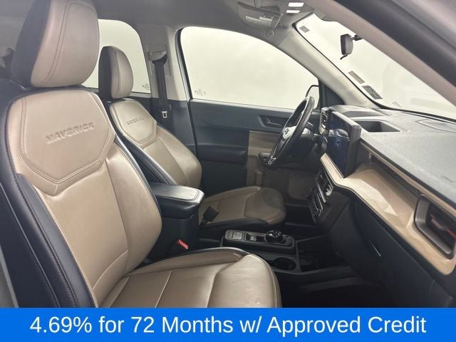 The Maverick Lariat's striking exterior is accentuated by its bold, modern styling cues and 19 machined painted aluminum wheels, while the interior pampers you with premium ActiveX-trimmed heated front bucket seats, a heated steering wheel, and the advanced SYNC 4 infotainment system with Connected Navigation.