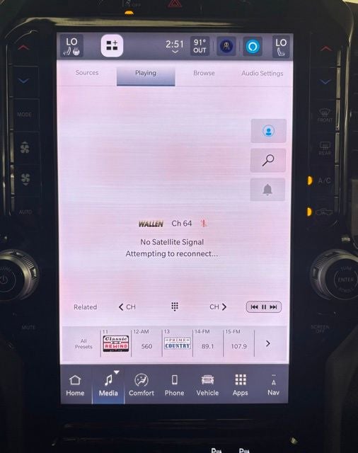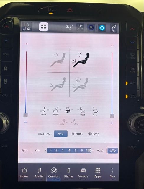 Laramie Level 1 Equipment Group (Rain Sensitive Windshield Wipers and Remote Tailgate Release), Laramie Southwest Edition (Accent Color Premium Power Mirrors, Auto Power-Folding Mirrors, Auto-Dimming Exterior Driver Mirror, Black Painted Exterior Mirrors Caps, Body Color Front Bumper, Body Color Rear Bumper w/Step Pads, Convex Wide-Angle Exterior Mirror Insert, Dome Dual LED Reading Lamp, Dual-Pane Panoramic Sunroof, Exterior Mirrors Courtesy Lamps, Exterior Mirrors w/Heating Element, Exterior Mirrors w/Memory, Exterior Mirrors w/Supplemental Signals, Grille Surround 3 Body Color Tex 4 Chrome, LED Dome/Reading Lamp, Power Deployable Running Boards, RAM Grille Badge - Chrome, Tow Hooks, and Trailer Brake Control), Quick Order Package 21H Laramie, 10 Speakers, 3 Rear Seat Head Restraints, 3.55 Rear Axle Ratio, 33 Gallon Fuel Tank, 4 Way Front Headrests, 4-Wheel Disc Brakes, 4G LTE Wi-Fi Hot Spot, ABS brakes, Air Conditioning, Alloy wheels, AM/FM radio: SiriusXM with 360L, Anti-Spin Differential Rear Axle, Apple CarPlay, Apple CarPlay/Android Auto, Audio memory, Auto High-beam Headlights, Auto-dimming door mirrors, Auto-dimming Rear-View mirror, Automatic temperature control, Brake assist, Bumpers: chrome, Chrome Exterior Mirrors, Compass, Connected Travel & Traffic Services, Connectivity - US/Canada, Delay-off headlights, Driver door bin, Driver Seat Memory, Driver vanity mirror, Dual front impact airbags, Dual front side impact airbags, Electronic Stability Control, Exterior 115V AC Outlet, Front anti-roll bar, Front Center Armrest w/Storage, Front dual zone A/C, Front fog lights, Front reading lights, Front Seat Back Map Pockets, Front wheel independent suspension, Fully automatic headlights, Garage door transmitter, Google Android Auto, GPS Antenna Input, GPS Navigation, HD Radio, Heated door mirrors, Heated Front Seats, Heated front seats, Heated rear seats, Heated Steering Wheel, Heated steering wheel, Illuminated entry, Integrated Voice Command w/Bluetooth®, Leather steering wheel, Leather Trim 40/20/40 Bench Seat, Low tire pressure warning, Memory seat, Navigation System, Occupant sensing airbag, Outside temperature display, Overhead airbag, Overhead console, Panic alarm, ParkView Rear Back-Up Camera, Passenger door bin, Passenger vanity mirror, Power 2-Way Driver Lumbar Adjust, Power 2-Way Passenger Lumbar Adjust, Power Adjust 8-Way Front Passenger Seat, Power door mirrors, Power driver seat, Power passenger seat, Power steering, Power windows, Radio data system, Radio: Uconnect 5 Nav w/12.0 Display, RamBox Cargo Management System, Rear anti-roll bar, Rear reading lights, Rear seat center armrest, Rear step bumper, Remote keyless entry, Security system, SiriusXM w/360L, Speed control, Split folding rear seat, Steering wheel mounted audio controls, Tachometer, Telescoping steering wheel, Tilt steering wheel, Traction control, Trip computer, Turn signal indicator mirrors, USB Host Flip, Variably intermittent wipers, Ventilated Front Seats, Ventilated front seats, Voltmeter, and Wheels: 20 x 9 Premium Paint/Polish.